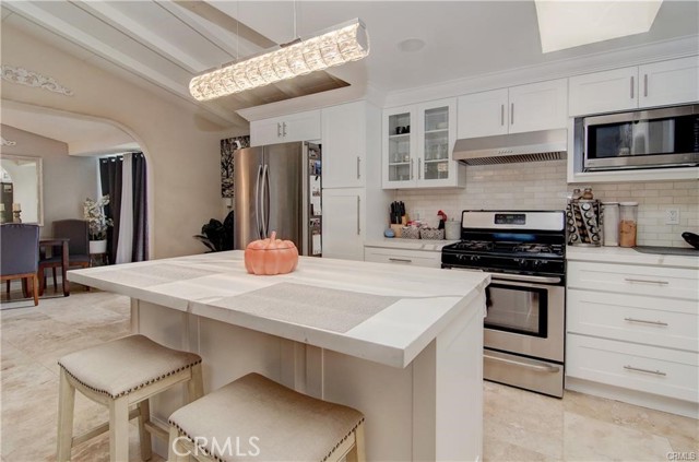 Welcome Home! Step into this well-loved and beautifully updated mid-century modern gem, offering the perfect blend of comfort, style, and functionality. Featuring four bedrooms and two bathrooms, this home boasts an open-concept layout designed for easy living and effortless entertaining. The fabulous new kitchen showcases sleek shaker cabinets and quartz countertops, seamlessly flowing into the dining and living areas, complete with a newly added AC unit for year-round comfort. The primary bathroom has been tastefully upgraded, while travertine floors throughout the main living areas and hardwood floors in the bedrooms add warmth and sophistication. Step outside to your private backyard retreat, featuring a sparkling pool completely refinished with Pebble Tec, new coping, tile, and updated equipment, perfect for summer gatherings or relaxing weekends. The sizable gated corner lot offers RV potential, a Tesla charger, and plenty of space for family and friends to enjoy. Ideally located near Disneyland, top-rated restaurants, shopping, and freeways, this home captures the best of Southern California living! ***PHOTOS COMING SOON***