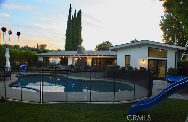 Stunning Mid Century modern designed by Charles Du Bois! This gorgeous 4 bedroom POOL home is remodeled to the 10’s w/ a contemporary design! Original bright open floorplan w/vaulted ceilings and center island gourmet kitchen featuring white shaker cabinets, quartz countertops, top of the line appliances and 6 burner cooktop with high CFM designer hood. This chefs dream kitchen opens to the spacious living room and the large family room w/ sliders allow easy access to the perfect private backyard with lush landscaping, sparkling pool / spa and multiple patios to accommodate entertaining and outdoor dining! Large circular driveway with 2 car garage and tons of built-ins for storage! Amazing neighborhood in prime location south of the Blvd adjacent to Calabasas close to Bristol Farms, Starbucks, Farmers Market, Commons of Calabasas, The Village and award winning school district!