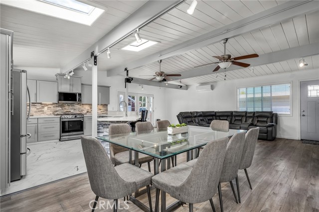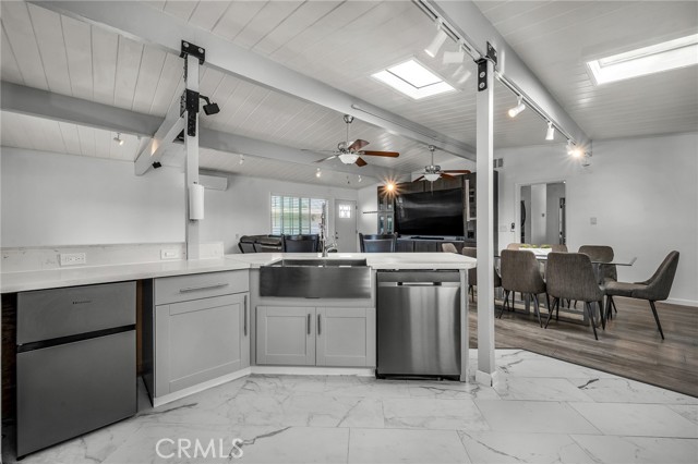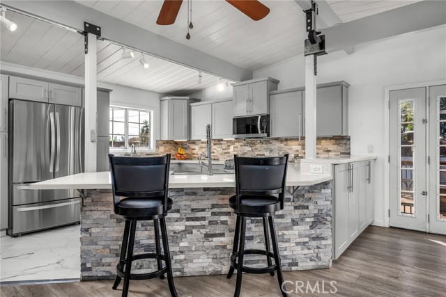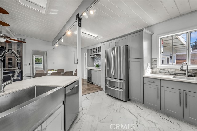 Welcome to this beautifully updated 4-bedroom, 3-bath home where modern design meets total energy independence. Fully electrified and powered by a paid-off 15.5kWh solar system with 17.5 years remaining on the grandfathered NEM 2.0 program, this home has not had an electric bill in years—even with an EV, AC, and outdoor spa tub. Upgrades include a new 200-amp service panel with dual subpanels, a 60-amp EV charger, heat pump water heater, mini-split AC/heater, and CAT6 internet wiring throughout. The open-concept living area features a custom-designed kitchen with stainless farmhouse and prep sinks, undercabinet lighting, pull-out shelving, a large peninsula with breakfast bar seating, and like-new LG and Samsung appliances. The adjoining living room offers an 85” 8K Samsung TV, surround sound, and custom built-ins for the perfect entertainment space. The primary suite is a true retreat, featuring a custom walk-in closet, luxurious bath with dual vanities, a large walk-in shower with four showerheads and bench seating, and a Euro-style wall-mounted toilet in a private room. Outdoor living shines with a beautifully finished backyard, complete with a natural gas BBQ and heaters, a 75” outdoor TV with surround sound, a 7-person spa tub, shade sails, fire pit, and USB outlets throughout. Two large custom sheds provide abundant storage and a finished gym space. Additional highlights include two custom-tiled bathrooms, modern water and drain lines, full exterior lighting, a newer roof and garage door, fully wired smoke and carbon monoxide system, and attractive front and side planter beds. Every detail has been thoughtfully curated to deliver comfort, style, and energy efficiency at its best.
