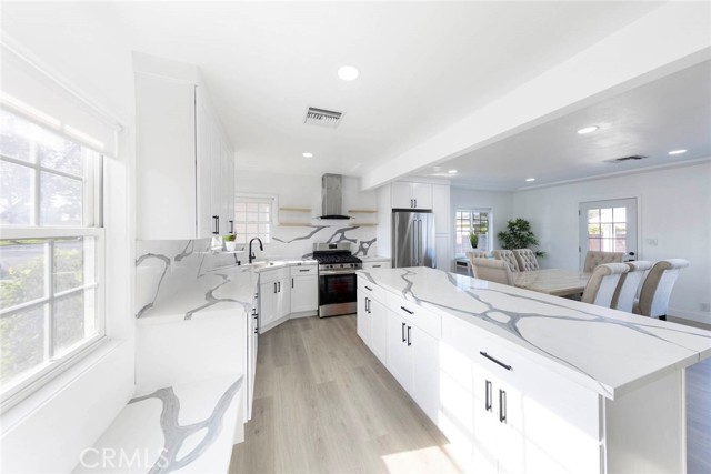 Beautifully Remodeled Single-Level Home in Bellflower! Step into this move-in-ready home showcasing a full interior and exterior renovation with modern finishes throughout. Enjoy fresh paint inside and out, including the patio, garage, iron fencing, and planters. The interior features brand-new laminate flooring, new base moldings and upgraded electrical with all-new ceiling lighting. The fully remodeled kitchen is the heart of the home, offering new cabinets, a spacious island, stainless steel appliances, and all-new windows that fill the space with natural light. Additional highlights include new interior doors, a refinished front entry door, new sliding patio door, and a new water heater. Both bathrooms have been completely updated with new plumbing lines, shower systems, vanities, faucets, and toilets. The exterior boasts new landscaping with a sprinkler system front and back, along with fresh plants and decorative greenery—perfect for outdoor relaxation and entertaining. Located close to major freeways, 605, 91, and 105 Freeways. This stunning single-level home blends comfort, style, and quality craftsmanship—truly a must-see!