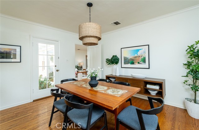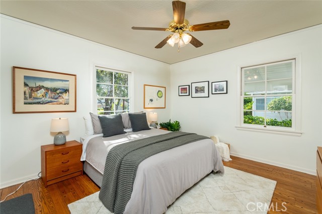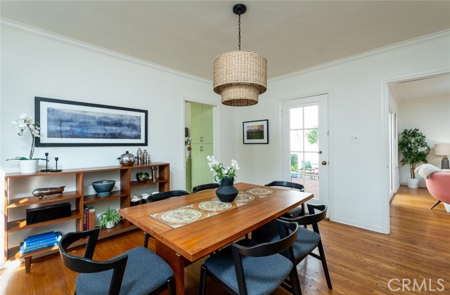 Nestled on a picturesque tree-lined street in the highly desirable Verdugo Woodlands neighborhood, this 1930s charmer blends timeless character with inviting livability. A welcoming facade and lush landscaping create exceptional curb appeal, while the home’s thoughtful floor plan offers an easy flow between spaces. The spacious living room features large picture windows that frame tranquil views of the private backyard, flooding the space with natural light. A handsome fireplace adds warmth and a focal point to the room. The generous formal dining room provides an ideal setting for gatherings and entertaining. The expansive kitchen offers abundant possibilities for a future remodel or simply to enjoy as-is, with plenty of room for a secondary dining space. Outdoors, the beautifully landscaped and private backyard is a true retreat, complete with garden areas, a lush lawn, and a huge covered patio perfect for outdoor dining or relaxing in the shade. A detached shed adds convenient extra storage. Architectural details and a thoughtful mix of exterior materials give this home striking visual appeal. With a two-car garage, an ample driveway, and a location close to parks, trails, and award-winning schools, this Verdugo Woodlands gem offers an exceptional opportunity to own a piece of Glendale history in one of its most beloved neighborhoods.