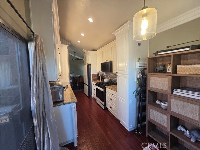 Welcome to your private retreat in the sought-after Lakeridge Whittier community! This beautifully upgraded end-unit condo offers the perfect blend of comfort, style, and convenience. Step inside and be greeted by soaring ceilings and stunning floor to ceiling windows that fill the home with an abundance of natural light. The open concept living area flows seamlessly to a spacious covered deck, ideal for morning coffee, weekend barbecues, or simply enjoying the serene surroundings. The thoughtfully newer kitchen features crisp white cabinetry, timeless granite countertops, stainless steel appliances, custom pullout shelving, and modern farmhouse-inspired lighting, perfect for cooking and entertaining. The master suite is equally inviting, complete with a large walk-in closet, skylight, and recently updated waterproof laminate flooring and baseboards, creating a relaxing sanctuary to unwind. Engergy efficient doublepane windows with loe-366 rated glass to block heat and UV rays, keeps the home properly insulated. Enjoy the ease of in unit laundry, a newer water heater, and a private three sided garage located directly below the unit for secure parking and additional storage. Lakeridge is a tranquil, gated community surrounded by lush landscaping and peaceful creeks, with resort style amenities including four swimming pools, relaxing spas, saunas, and tennis courts all maintained by the HOA. An additional parking space is also available through the HOA for $60 monthly fee. Perfectly located near shopping, dining, and easy freeway access, this home is move-in ready and waiting for you to make it your own. Don’t miss the chance to own your own slice of Whittier living!