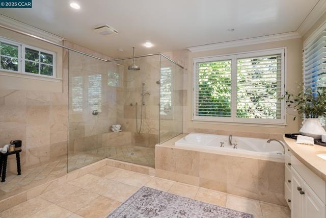 This stunning custom residence, built by renowned R&J Construction, rests on nearly half an acre surrounded by lush, mature landscaping. Designed for both entertaining and everyday living, the open-concept layout blends timeless craftsmanship with modern comfort. Originally owned by Franklin “Pete” Kistner—founder of the restaurant Pete’s Brass Rail & Car Wash—this home radiates warmth, character, and enduring charm. At the heart of the home, the chef’s kitchen captivates with a patinated copper vent hood as its centerpiece, complemented by rich custom cabinetry, striking green marble countertops, and a professional-grade Lacanche range featuring three ovens and two warming drawers. Perfect for gatherings, the oversized island with prep sink seats six. Built-in stainless steel appliances include double ovens, refrigerator, and dishwasher. A stone fireplace with integrated pizza oven anchors the open living and dining areas, leading to a spacious deck ideal for entertaining or quiet relaxation among the trees. The luxurious primary retreat offers deck access, a spa-inspired bath, and generous walk-in closet. The main level includes two additional bedrooms—one used as an office—and laundry room, while the upper level features a private bonus room or potential fourth bedroom.