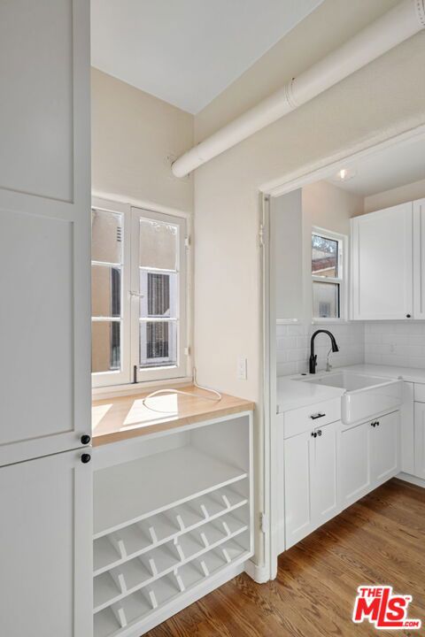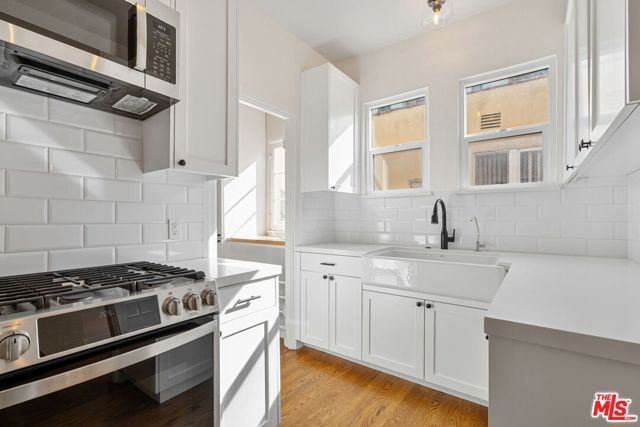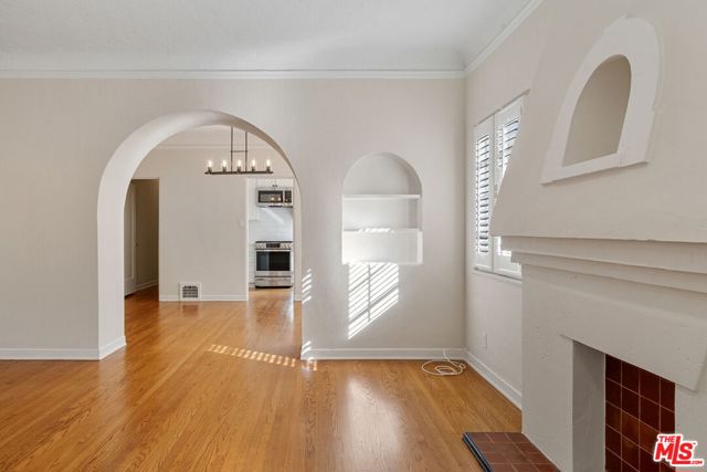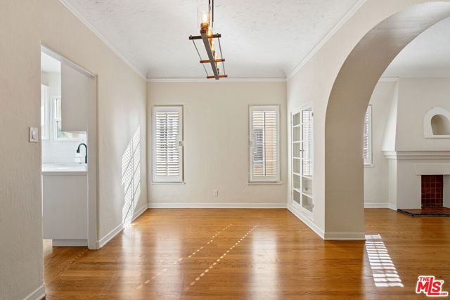 Newly updated desired top floor corner 2 bed/1 bath unit in incredibly charming Spanish Four-Plex in prime Pico/Robertson neighborhood, filled with natural light and beautiful designer finishes and incredible Spanish arches and character throughout. Feels like your own home, with your own stairway leading to front door. Spacious living room with coved ceilings, crown molding & plantation shutters throughout. Archway opens to large dining room with built-in cabinets and closet. Period details including refinished all hardwood flooring, art niches, crown molding, archways and wood-framed windows. Newly updated kitchen with new cabinetry, new appliance, quartz countertops, subway tiled backsplash and stainless steel appliances including gas range/oven & microwave. Separate laundry room w/ sidexside washer/dryer & back stairwell access to side yard/common area. Remodeled full bath w/ tile and quartz finishes. Close proximity to Beverly Hills, Robertson Blvd. restaurants and retail and Century City. Available immediately!