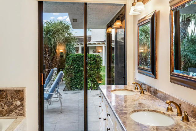 Seasonal lease. Pet deposit required for pets. All kitchen appliances have been updated to stainless steelDiscover a serene retreat in the heart of The Springs Country Club! This rarely available 2,561 sq. ft. home offers 3 bedrooms, 3 bathrooms, and stunning San Jacinto Mountain views. The open living and dining area seamlessly extends to multiple outdoor seating spaces, perfect for indoor-outdoor desert living. Enjoy a well-appointed kitchen with ample counter space, a cozy breakfast nook, and a private back patio ideal for grilling and dining under the stars. High ceilings and abundant sliders fill the home with natural light. Each bedroom features a private patio, creating a personal oasis for guests. Additional highlights include a separate laundry room, an attached two-car + golf cart garage, and easy access to a nearby community pool. Experience luxury living at The Springs!