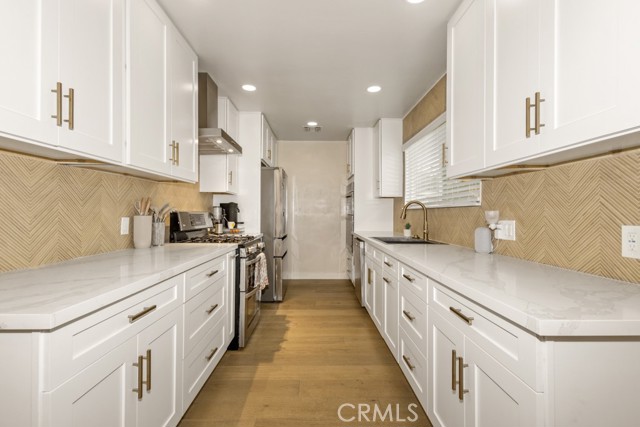 Welcome to 8133 Canterbury Drive, a stunningly remodeled home nestled in Buena Park’s highly sought-after Flower Tract. This move-in-ready residence blends modern sophistication with timeless charm, offering three bedrooms and two beautifully updated bathrooms. Step inside to discover an open, light-filled floor plan featuring recessed lighting, dual-pane windows, and new flooring throughout. The designer kitchen showcases elegant white shaker cabinetry, quartz countertops, herringbone backsplash, stainless steel appliances, and gold hardware for a touch of luxury. Both bathrooms are newly renovated with custom tile work, framed LED mirrors, and high-end finishes. Outside, enjoy a private backyard with a long driveway, detached two-car garage, and space for RV parking or future ADU potential. Ideally located minutes from Knott’s Berry Farm, Buena Park Mall, and major freeways (91 & 5), this beautifully upgraded home delivers comfort, convenience, and impeccable style in one of Buena Park’s most desirable neighborhoods.