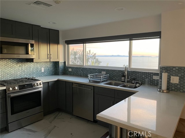 This is an ADU. Main house is owner occupied. This contemporary two-bedroom, one-bath accessory dwelling unit (ADU) is ideal for someone who wants a peaceful and sophisticated place to recoup from daily stresses. Architect designed and built in 2021 with high-quality materials. The unit has a panoramic ocean view (including Catalina Island), as well as a large, fully landscaped backyard, a long balcony, and an adjacent area to enjoy gorgeous sunsets. Furnished with new high-end Bosch appliances, including a refrigerator, dishwasher, range, oven, and microwave set in spacious cabinetry. Engineered hardwood flooring throughout and a beautiful, magazine-worthy kitchen with tiled flooring and granite countertops, including an extension for casual dining. Indirect controllable lighting for effect. The unit is a spacious 1100 sq. ft. area and includes outlets for two TVs. Stunning views from the kitchen, dining, and living areas. Security system, washer and dryer, and all utilities included. One car garage. Close to all amenities. The extraordinary Palos Verdes lifestyle includes award-winning schools and nearby access to fine restaurants, Terranea Resort, beautiful golf courses, parks and beaches, hiking trails, surfing, tennis, and equestrian facilities.