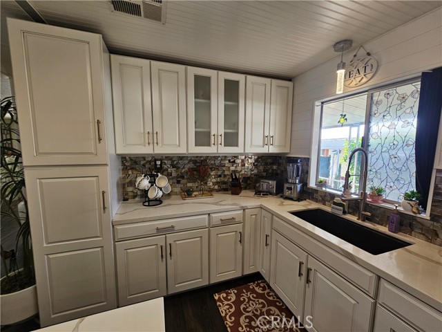 $50,000.+ DREAM KITCHEN awaits you! STATE OF THE ART Appliances in this INCREDIBLE, REMODELED ISLAND KITCHEN! Feast your eyes on this wonderful, ELEGANT, DESIGNER home, comfortable, yet screams "Look At Me!" Seller has spared no expense with the amount of upgrades in this STUNNING TURN KEY HOME. Upgraded 220 amp electrical panel, Custom fan/lights, exquisite decorating, bold laminate flooring throughout, NEW bathroom fixtures, commode & lavy, Primary Bedroom boasts of a dressing area + Walk-in Closet. Located in Redlands' 5 Star All Age Community that caters to it's residents yearlong. Beautiful pool, jacuzzi, BBQ area, Pool Tables, Recreation Room, Library/card room, living rm with fireplace, remodeled kitchen Plus a workout room. Go no further than this! Make your appointment to see this, truly, one-of-a-kind Elegant, Designer home! (S#5353X/U) Lot rental is ridiculously low at $646.66/month, utilities extra.