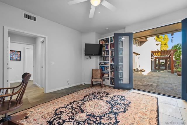 Located in one of Coronado’s most iconic neighborhoods, this stunning residence sits on a gorgeous, tree-lined street and offers a rare blend of architectural character, indoor–outdoor living, and thoughtful design. A private iron gate leads you across a dramatic glass-walkway bridge suspended over a koi pond, guiding you into a spacious front patio—an inviting extension of the home. The kitchen and family room open completely to this outdoor area through an expansive wall of retractable windows, creating a seamless flow that’s perfect for coastal living and entertaining. Inside, the home features a beautifully designed kitchen with elegant countertops, custom wood cabinetry, and generous workspace. Extra-high ceilings flood the interiors with natural light. The living room is centered around a warm, inviting fireplace, or step outside to enjoy the outdoor fireplace and gather under the stars. The floor plan is exceptionally well laid out, offering two full bedrooms and two baths on the main level, including a spacious primary suite. Upstairs are two additional large bedrooms, providing flexibility for guests, office space, or multigenerational living. Additional highlights include an attached two-car garage with a dedicated work area, abundant storage throughout, a large walk-in storage room, and solar. This home masterfully combines comfort, style, and timeless design—an exceptional opportunity in one of Coronado’s most desired neighborhoods.