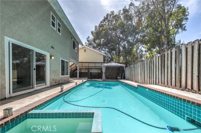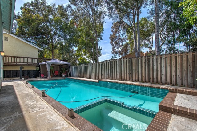 Beautifully maintained split level pool/spa home in excellent location near freeway, shopping, parks, and schools. Fenced private back yard with access to green belt area with walking trails. Recently remodeled kitchen and bathrooms have been updated with great care. One bedroom and bathroom in the lower level along with family room, formal dining, and large living room with wood burning fireplace. Hard surface flooring throughout for simple maintenance. Energy efficient windows along with central air conditioning, whole house fan, and ceiling fans in master bedroom and family room keep the house cool in the summer and warm in winter. Two car attached garage with plenty of storage. The community offers two pools with picnic tables and gas BBQ grills, large park with volleyball court, and a brand new playground.