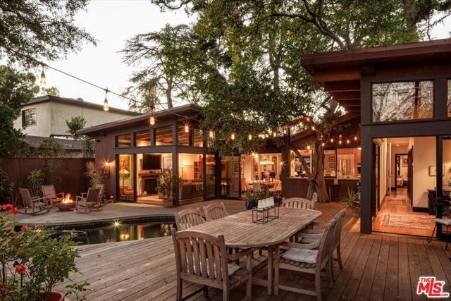 Set on a tranquil, tree-lined street, this striking Architectural Modern residence blends contemporary design with natural beauty and effortless California living. First time on market in 30 years, the owners have transformed this surreal urban compound with sun-filled interiors showcasing luxe oak wood flooring throughout; creating an elegant and cohesive foundation for refined daily life. The open living, dining, and kitchen spaces are thoughtfully designed for elevated entertaining and comfortable everyday living. The chef's kitchen serves as the heart of the home, appointed with custom cabinetry, premium appliances, and an oversized island ideal for hosting and gathering. Walls of glass open to an enchanting backyard retreat framed by mature Deodar Cedar trees, towering Canary Island Pines, and a majestic, time-honored Oak that anchors the landscape with presence and tranquility. The outdoor setting is completed with a resort-style swimming pool, sun deck, and curated greenery - an immersive sanctuary for relaxation or celebration. A glass-walled garden conservatory artist's studio offers a serene, light-filled escape perfect for creative pursuits, a private office, or wellness retreat seamlessly blending the indoors with the surrounding landscape. The primary suite is a true sanctuary, featuring a spa-inspired bath with dual vanities, a walk-in shower, and soaking tub, complemented by two walk-in closets for exceptional space and comfort. Located moments from Studio City's most coveted destinations including Erewhon, The Shops at Sportsmen's Lodge, and Ventura Boulevard's celebrated dining, shopping, and cultural scene, this residence presents a rare opportunity to enjoy architectural refinement, natural serenity, and vibrant city living in one extraordinary offering.