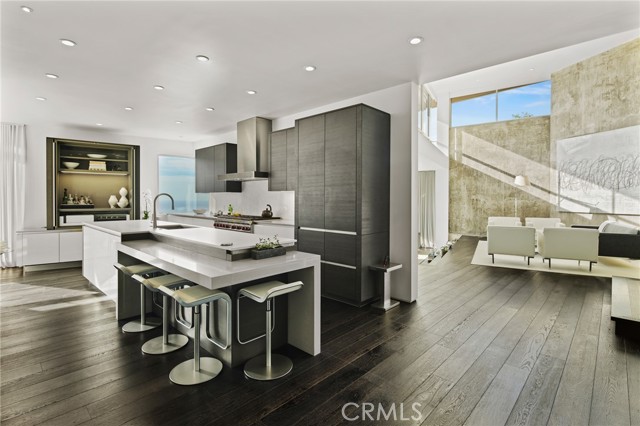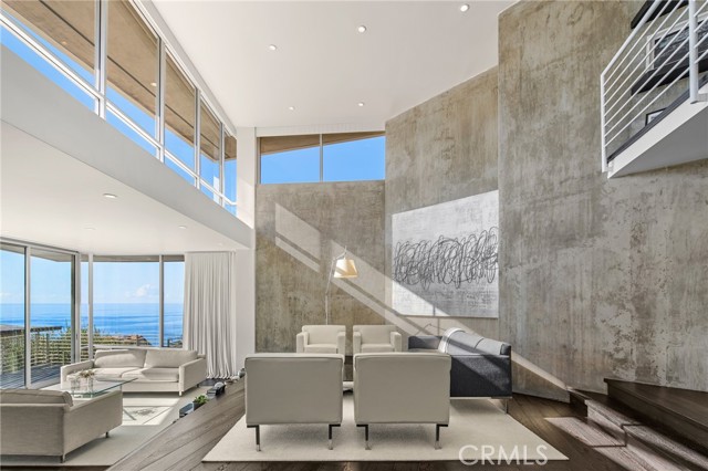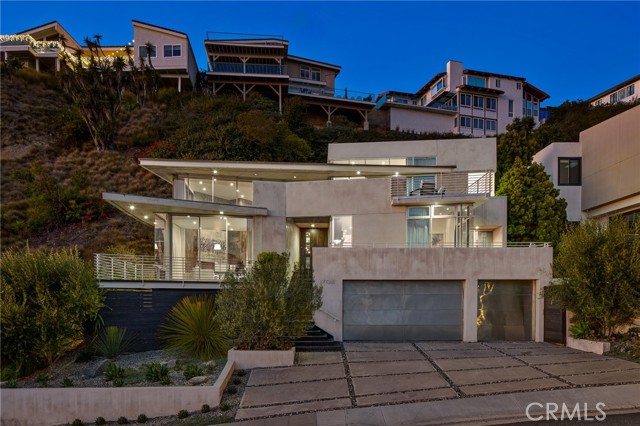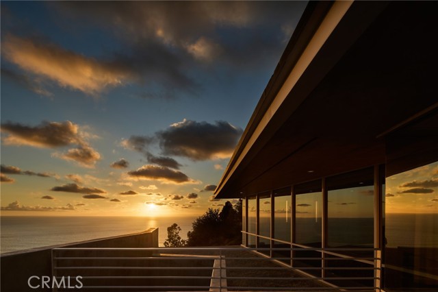 Resplendent amidst a lyrical composition of native California foliage, this inimitably refined residence presents a remarkable collaboration of contextual resonance, interdisciplinary craftsmanship, and aesthetic materiality. Complemented by a panoramic surround of the glittering Pacific and idyllic coastline community, the home and its thoughtful orientation provide a perfect balance of light, space, and scenic views. Created by acclaimed Horst Architects and enhanced by Leo Parrella Design Group, the entire environment offers a series of evocative moments designed for elegant yet comfortable living with accommodations to suit myriad lifestyles. High-volume ceilings, galleries of glass windows and doors, French Oak hardwood, natural stones, and a choreographed lighting scheme elevate all principal living areas, along with four canyon and ocean-view terraces – extending connection to the splendid coastal setting. Among many remarkable attributes, a rare selection of distinctions includes a sophisticated spatial arrangement, favoring scaled entertaining; striking architectural detail; a European-style system kitchen; and an exceptional dedicated primary suite level affording a fluid respite with a private terrace, resort-like statement bath, concealed wardrobe room, a lounge, and secluded sun-deck courtyard. The incorporated elements and level of finish quality reflected throughout the property are nothing short of extraordinary. Every consideration was made in developing a noteworthy assemblage of fine finishes, fixtures, applications, appliances, and technological advancements. The result – transcendent style and uncompromised atmosphere. Further distinguishing the property – optimal proximity to not only the region’s abundant amenities, but also those intrinsic to this sought-after enclave.