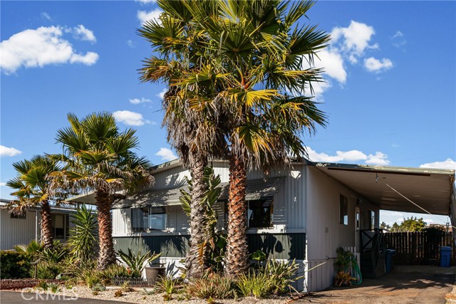 This lovingly-cared-for home is located in a desirable all-ages park offering great amenities, including a pool, clubhouse, and pool table. Space rent is a remarkable value at under $400 per month, making this one of the most affordable and attractive communities in the area. The property includes a private, large backyard with room to entertain or garden and is accented by beautiful palm trees in the front yard for added curb appeal. The home has been extensively updated with quality finishes throughout. Interior improvements include drywall in the living room, dining area, and primary bedroom, hardwood flooring throughout (with tile in the primary bath), and granite kitchen countertops. The kitchen also features freshly painted cabinetry, updated hardware, a premium garbage disposal, and a filtered drinking-water spout. Additional upgrades include new subfloor insulation, a new moisture barrier, and a gas line installation for the dryer. The primary bathroom remodel features a resurfaced shower and countertop. This home has shown exceptional long-term reliability — no roof leaks, furnace or water heater issues, or structural concerns. The central location is ideal being 2 miles from Oceano Dunes and 2 miles to the 101. Enjoy a quiet, friendly community setting with well-kept grounds, wide streets, and pride of ownership throughout.