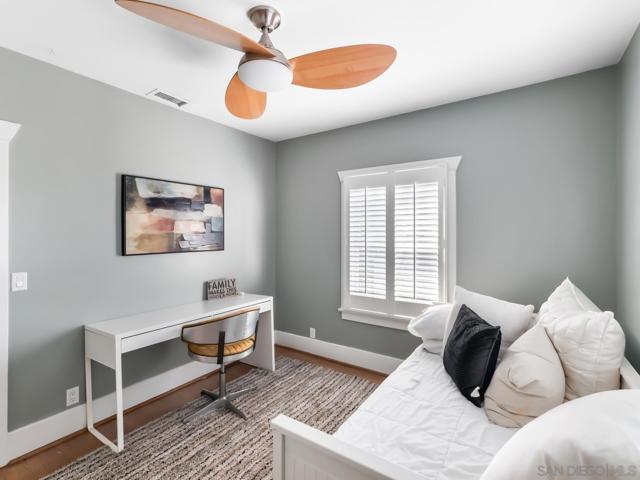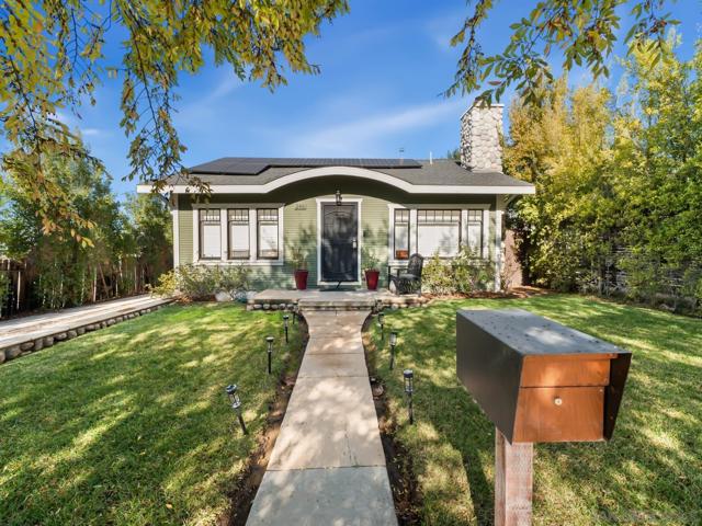Discover a rare opportunity to own a beautifully restored Craftsman-style home in the heart of Old Historic Escondido, where classic character meets modern comfort. This thoughtfully curated 2-bed, 1-bath main house showcases rich architectural details, hardwood floors, plantation shutters, and an inviting fireplace that anchors the living space with warmth and charm. The remodeled kitchen blends vintage appeal with upscale upgrades, featuring quartz countertops, a custom farmhouse-style sink, and a statement retro fridge that adds a touch of personality. The home’s abundant natural lighting enhances every room, highlighting its craftsmanship and timeless design. The spa-inspired bathroom includes a beautiful stand-alone antique tub, creating a serene retreat. Energy-efficient solar adds modern convenience. A beautifully designed detached ADU offers exceptional flexibility for guests, extended family, or rental income—complete with its own full bath, kitchenette, and refrigerator. The property sits on a spacious lot with curated outdoor spaces, including garden beds, a secluded jacuzzi area, and generous open yard space perfect for entertaining or relaxation. Alley access with a private gate offers convenience, while two storage sheds provide ample extra space. A truly unique blend of vintage soul and contemporary upgrades—this home captures the essence of luxury living in one of Escondido’s most charming historic neighborhoods.