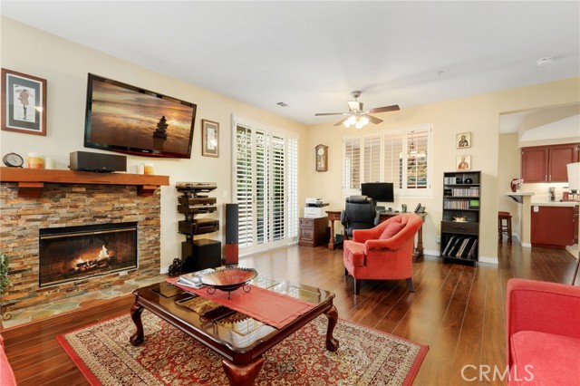 Welcome to 16 Cambria, a unique end-unit residence in the highly sought-after gated community of Mirasol in Mission Viejo. With its private entrance and gated access to the backyard, this home offers both charm and functionality. Inside, you’ll find laminate wood floors, plantation shutters, and a bright, open floorplan designed for comfortable living. The inviting family room, complete with a cozy fireplace, flows seamlessly into the dining area and kitchen, where stainless steel appliances and a convenient breakfast counter await. Sliding glass doors lead to a spacious, private backyard—an entertainer’s dream—featuring a built-in firepit and BBQ island. A powder room and direct access to the two-car attached garage complete the first level. Upstairs, the primary suite offers a peaceful retreat with dual vanities, a soaking tub, and a separate walk-in shower. Two secondary bedrooms share a full hall bathroom. As a resident of Mirasol, you’ll enjoy access to the community pool and spas, plus exclusive membership to Lake Mission Viejo, where year-round activities, water recreation, and summer concerts create the perfect Southern California lifestyle.