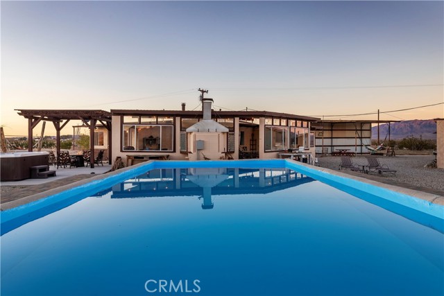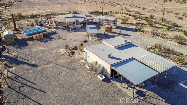 Escape to a secluded 20-acre corporate retreat compound designed for privacy and serenity. This exceptional property boasts three homes and 4 APNs, a tranquil yoga room, and two inviting pools, creating the perfect setting for both relaxation and recreation. The central building features a sunlit yoga studio with sliding glass doors that open to stunning views of the expansive desert landscape. A bright kitchen, complete with a dining table, lounge chairs, and sliding glass doors, offers an ideal space for meals or quiet moments with tea. The main house includes an open bedroom, two bathrooms with showers, a covered patio lounge, and two outdoor showers. Step outside to a shaded patio that leads to a pool and deck, where you can unwind while taking in the vast desert scenery. An exterior shaded area features a private outdoor bathroom equipped with a sink, shower, and toilet. Surrounded by thousands of acres of untouched wilderness to the east, this property provides a true connection to nature. One of the homes is approved for short-term rentals, presenting an excellent investment opportunity. Located in a prime area, the retreat is just moments away from local activities and events, including hiking, exploring the wilderness, and participating in nearby community gatherings. Don’t miss the chance to own this extraordinary retreat, where tranquility meets adventure.