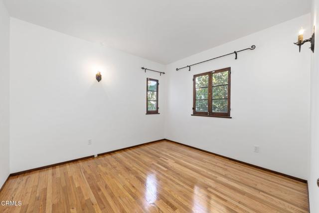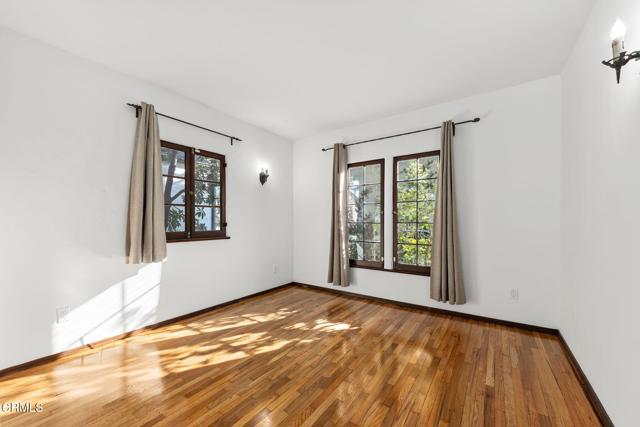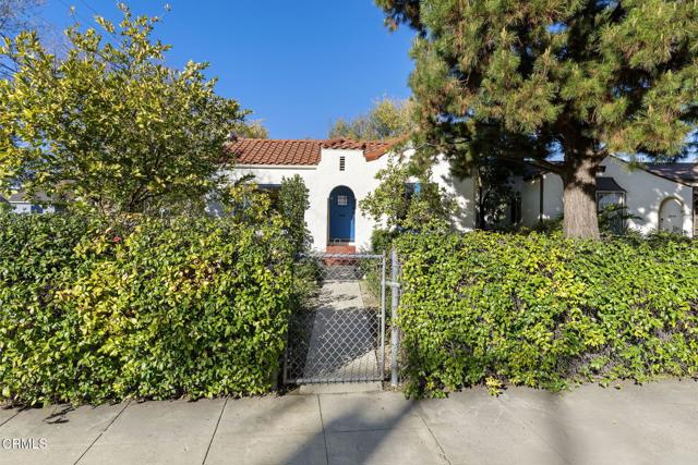 Step into this beautifully preserved 1928 2-bedroom, 1-bath Spanish-style home, brimming with original charm and thoughtful architectural details. From the inviting arched entryway and vibrant blue front door to the lush, sun-dappled landscaping, this home welcomes you with warmth and personality.Inside, the spacious living room features gleaming hardwood floors, arched plasterwork, and a stunning period mantle framed by original wood windows that fill the space with natural light. The adjoining dining room offers lovely garden views and a wrought-iron chandelier that enhances the home's vintage character.The kitchen retains classic touches while offering ample opportunity for your personal updates. Outside, mature trees and flowering plantings create a serene setting perfect for morning coffee or quiet afternoons.Full of charm and authentic 1920s craftsmanship, this home is a rare find--a bright, soulful retreat ready to be loved for generations to come.