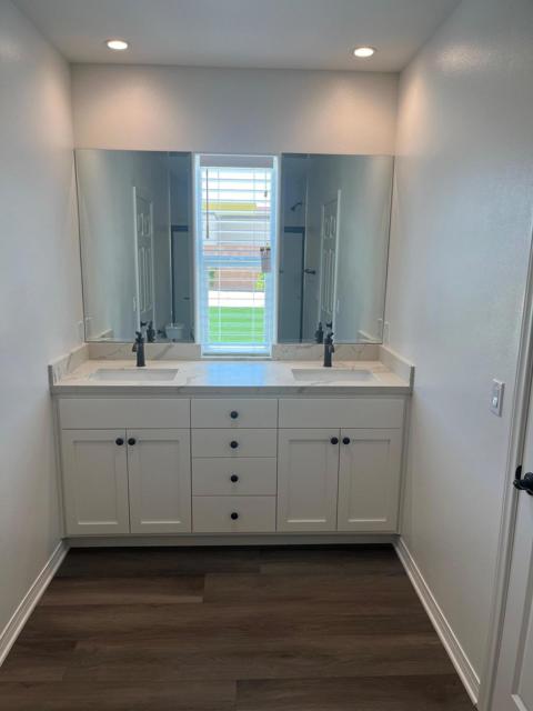 Built 2023. newer 4 bedroom 3 bath home with oversized garage (24x24) with an opening height of 7' 3', great form large vehicles.All appliances included with spacious laundry room with sink. Ductless cooling/heating system for air quality--Efficiently cool your entire home or one room at a time.. Block fenced yard with lush green artificial lawn and fruit trees for total privacyWater/trash/gardner included.