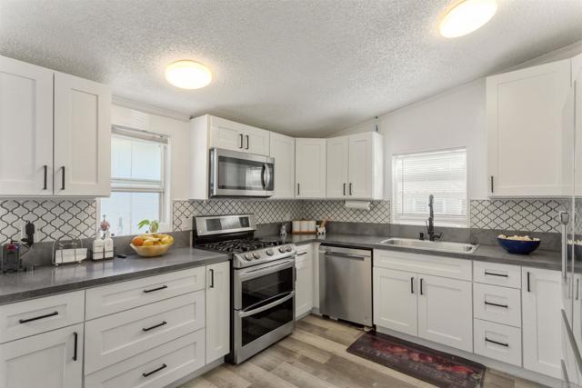 Welcome to the desirable all-ages Rancho Valley Park. This beautiful home offers an open concept floorplan of 960 spacious sq ft, showcasing 3 bedrooms and 2 baths. The large kitchen offers ample counter space, large pantry, and newer appliances - wonderful for entertaining family and friends.Well maintained fenced backyard with fruit trees, fully remodel, Central AC and heat system, new water heater, outdoor storage, Three car covered parking. This park also offers the convenience of shopping, restaurants, coffee shops, and other amazing local amenities. Ranch Valley Park is located in an amazing community with features such as, RV parking, a refreshing pool, spa, and a clubhouse with billiards.