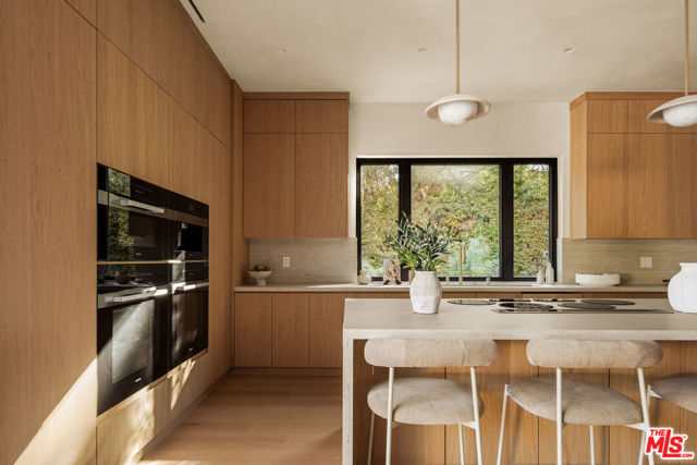 This newly built contemporary home by MLR Development, showcases striking design, thoughtful craftsmanship, and approx. 4,002 sq ft of refined living space in prime Sherman Oaks.A dramatic entry leads into an open-concept main level featuring expansive living and dining areas, soaring ceilings, and a private ensuite bedroom ideal for guests or a home office. The gourmet chef's kitchen is equipped with Miele appliances, stone countertops, custom cabinetry, an oversized island, and 10-foot collapsing glass doors that open to the backyard for seamless indoor-outdoor living. The private outdoor retreat offers a sparkling pool and spa, built-in BBQ, Green Egg smoker, pizza oven, generous lounge and dining areas, and lush landscaping for complete privacy. Upstairs, four ensuite bedrooms include a stunning primary suite with a sleek fireplace, custom walk-in closet, and spa-like bathroom with dual vanities, soaking tub, and oversized steam shower. Just moments from some of Sherman Oaks' best-rated dining and cafes including Anajak Thai, BLVD Steak, Bacari Sherman Oaks, and Tortoni Caffe.All just minutes from your front door. A rare opportunity to own a newly constructed luxury residence in one of Sherman Oaks' most desirable neighborhoods.