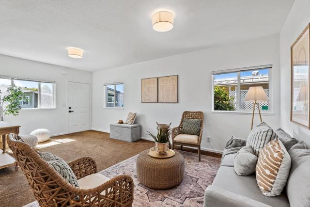A cliche' is a phrase that has become overused to the point of losing it's original meaning. But one cliche' that never loses it's meaning in one often used in real estate. Location, location, location. If you are looking for a home that checks all the boxes, your search is over. Located in the heart of the town of Capitola, close to shopping, one of the nicest beaches in the state, restaurants & more. #90 offers all of these. Situated in a meticulously maintained 55+ park, this 2 bedroom, 2 bath manufactured home features plenty of natural light from the many windows and the skylight in the open concept kitchen, dining and living room. Down the carpeted hallway is a laundry room with lots of storage, 2 large bedrooms, the primary with an en suite, and a guest bathroom with a tub and shower enclosure. Flooring includes carpet in the bedrooms, and sparkling vinyl in the kitchen and bathrooms. Carport for 2 cars highlight the exterior of the home, gardens, garden shed and a mechanical lift for easy access to the side door into the laundry room. This home has it all. Photos are from the previous staged home, not staged now. Vacant and easy to show.