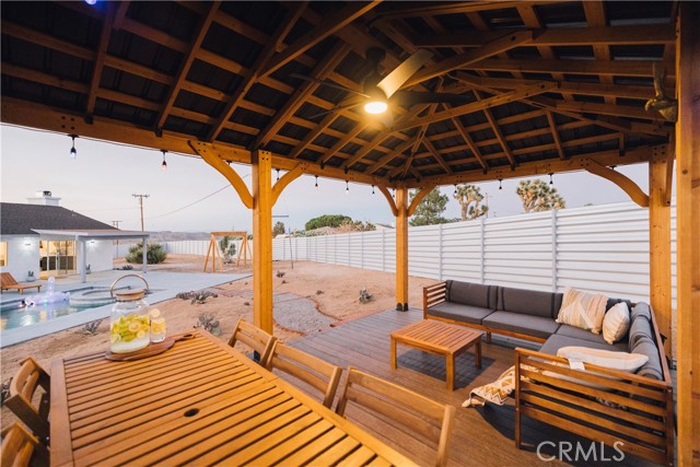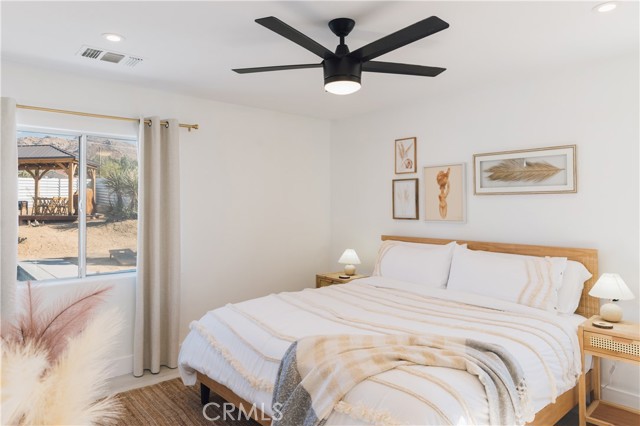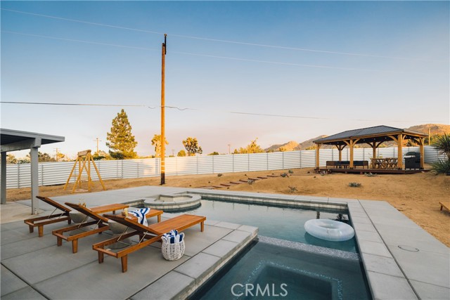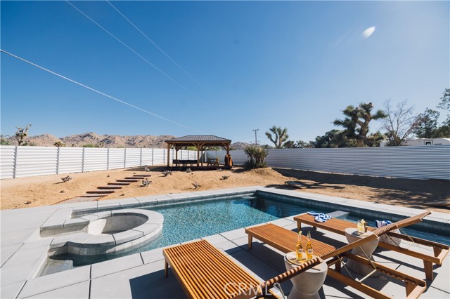 Owner-user vacation home with an established and permitted short-term rental use. This turnkey "Smart" vacation home is fully fenced and features 3 bedrooms and 2 baths on an oversized ½-acre lot in the desirable Friendly Hills area of Joshua Tree. The property includes a new pool with spa and sunk-in fire pit, new fencing, and a completely renovated interior. The home offers expansive mountain views, a large dining area with sliding glass doors, and a kitchen with new black stainless steel appliances, including a gas stove, dishwasher, and sink. The home is located minutes from the entrance to Joshua Tree National Park and local amenities. Additional features include a SmartHome system operated via smartphone apps (HVAC, pool temperature, lights, spa, and locks), excess land with potential for an ADU, a new water heater, and backyard entertainment areas. The home was remodeled in 2023, with a fully fenced backyard for privacy and security. It is approximately 5 minutes from Joshua Tree downtown and 12 minutes from the park entrance, in a quiet neighborhood next to a government-protected area that limits nearby development. The heated pool and spa, built in 2023, are app-operated. The property is approximately 45 minutes from Palm Springs. The home has been listed on Airbnb and VRBO, receiving 5-star ratings. The Airbnb listing and maintenance vendors may transfer for a smooth transition. Historical rental income information is available from the listing agent upon request.