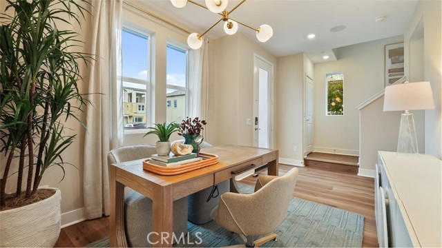 This new three-story townhome offers a spacious and convenient layout. The first floor features a versatile flex space, perfect for a home office or studio. The main living area can be found on the second level within an open-concept layout shared between the kitchen, living and dining areas, with a nearby deck for intimate outdoor experiences. All three bedrooms are located on the third floor for optimal comfort and privacy, including a lavish owner’s suite with a full bathroom and walk-in closet. Hazel is a collection offering brand-new townhomes at Pineridge in Fullerton, CA. Residents will enjoy access to an exclusive pool within the masterplan. Just outside the community are local retailers, parks and interconnected trail systems.