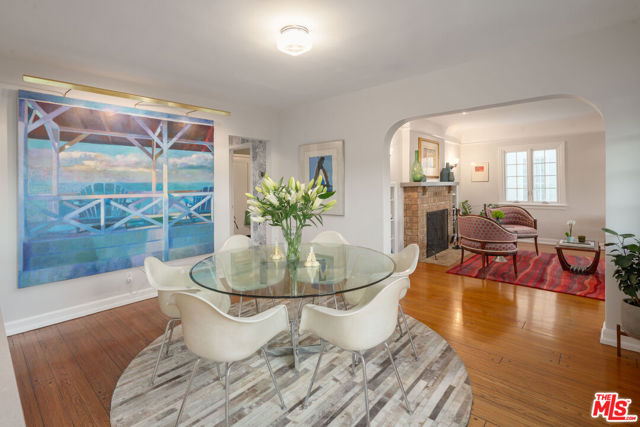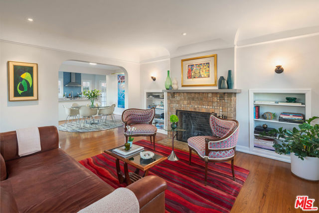 Welcome to 513 N. Mansfield, a beautifully renovated English country-style retreat that seamlessly blends modern luxury with timeless character. Gated and private, this inviting haven offers an extraordinary lifestyle in the heart of Hancock Park. Perfect for indoor/outdoor flow and effortless entertaining. The 3-bedroom, 2-bath main residence has been thoughtfully restored, preserving its original charm with an authentic Batchelder-tiled fireplace, rich wooden built-ins, arched doorways, and classic architectural detailing. A modern chef's kitchen with stainless steel appliances opens to the formal dining area, creating an ideal setting for both casual and elegant meals. The primary suite features a walk-in closet and a gorgeous new bathroom with dual sinks and a walk-in shower. Two additional bedrooms share a bright, newly renovated bathroom illuminated by a skylight. Light-filled living and dining spaces offer an effortless flow for everyday living and sophisticated gatherings. A fully renovated guest house adds exceptional versatility, complete with a kitchenette and an additional bathroom. Ideal for visitors, a home office, creative studio, or live-in help. The expansive grassy backyard is beautifully landscaped and anchored by a sparkling pool and spa, an idyllic backdrop for relaxing afternoons and memorable evenings under the California sky. Located in an unbeatable central Hancock Park location, you're moments from the city's best shops, cafes, and restaurants. Character-rich and stylishly updated, this is Los Angeles living at its finest.