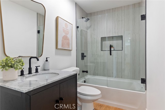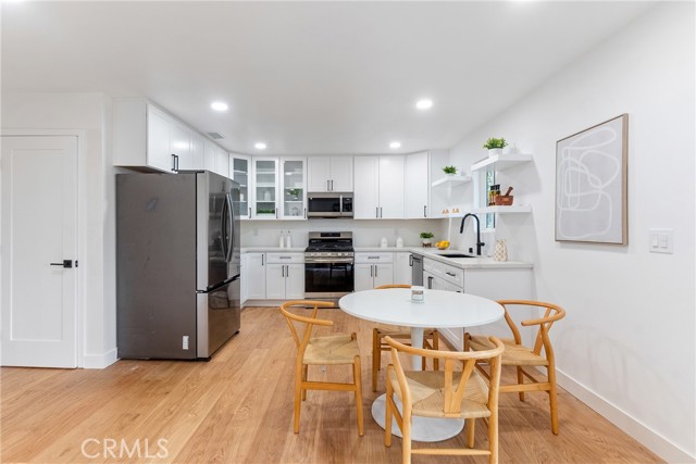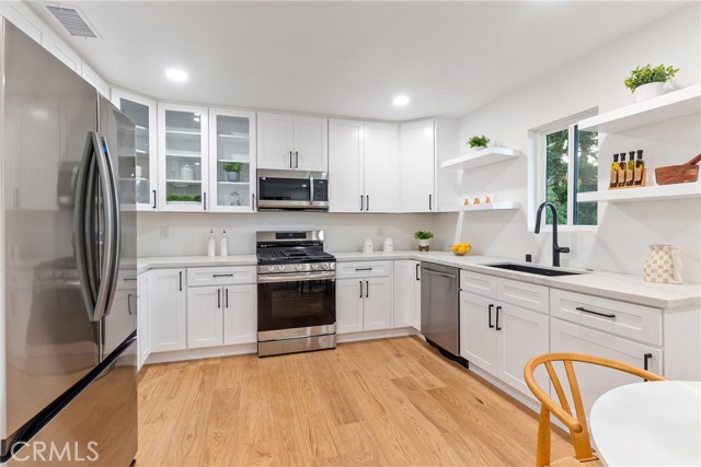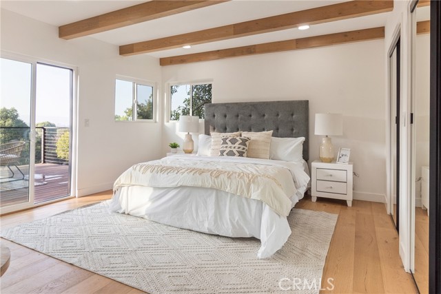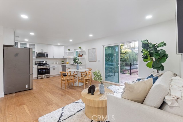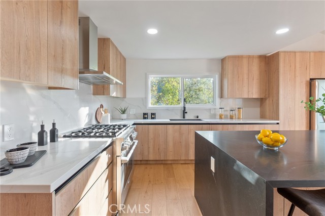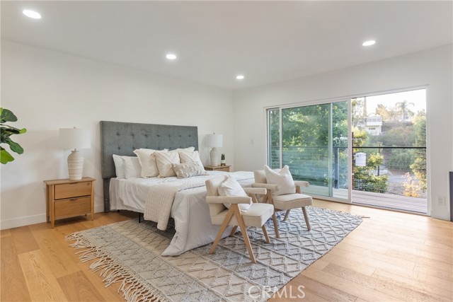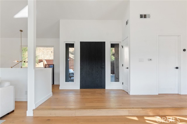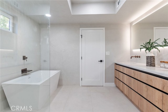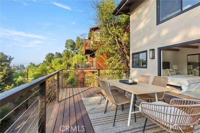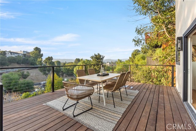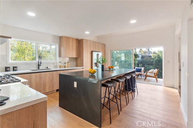 Perched in the coveted South of Ventura Blvd neighborhood of Woodland Hills, this stunningly remodeled property offers a total of 3,500 square feet of luxurious living space, including a beautifully designed 2,740-square-foot main residence and a fully upgraded 800-square-foot ADU—perfect for guests, rental income, or multi-generational living. Elevated in the hills, the property boasts panoramic city light views that serve as a breathtaking backdrop to this elegant retreat. The main residence features three spacious bedrooms and three beautifully designed bathrooms. At the heart of the home is a chef’s dream kitchen, outfitted with brand-new Signature appliances, custom oak cabinetry, Bedrosians Calcatta Milan quartz countertops, and a striking Brussels Blue quartz island. The primary suite is a sanctuary of comfort, complete with a custom walk-in closet, a built-in sauna, and a spa-inspired bathroom showcasing Venetian plaster shower walls, limewashed finishes, and brushed bronze hardware. Throughout the home, thoughtful upgrades include smooth stucco walls, recessed lighting, Pottery Barn and Arhaus light fixtures, and Arcadia European oak flooring. Expansive new Mangaris decks with steel cable railings extend the living space outdoors, offering the perfect vantage point to enjoy the serene surroundings. The ADU mirrors the quality and craftsmanship of the main home, featuring a modern kitchen with Samsung appliances, white shaker cabinets, Calacatta Caramel quartz countertops, and elegant finishes. Additional highlights include recessed lighting, central AC and heating, and matching oak flooring, ensuring a seamless integration of style and comfort. Located just moments from the 101 Freeway, Whole Foods, Trader Joe’s, and the area’s finest dining and shopping, this home offers a rare combination of privacy, convenience, and elevated living in the hills of Woodland Hills.