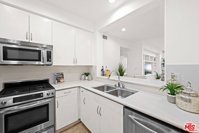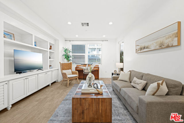 Step into Luxury in the most desired Playa Vista Neighborhood with all of the amenities of a Luxury Hotel. This stunning 2-bedroom, 2-bathroom, single-story condo corner unit. Tastefully designed home boasts a bright, open layout, seamlessly connecting the gourmet kitchen, dining area, and living room adorned with custom built-ins. The gourmet kitchen features exquisite stone countertops, premium stainless steel appliances, ample cabinet space, and a versatile area ideal for a desk, office, or breakfast nook. Your spacious private patio perfect for a BBQ, entertaining guests, or unwinding after a long day. Both bedrooms in this exquisite condo are ensuite and generously sized, each featuring spacious walk-in closets. The primary bedroom offers a haven of comfort, complemented by a luxurious bathroom with dual vanities, a separate walk-in shower, and a soothing soaking tub. In unit laundry closet is equipped with a stacked washer and dryer, along with additional cabinet space. The unit includes two parking spaces and extra storage. Residents enjoy access to an array of premier amenities, including the Center pointe Club pool and fitness center, The Resort, tennis courts, Concert Park, Runway Retail Center, and so much more. Embrace the vibrant Playa Vista lifestyle with unparalleled convenience and luxury at your doorstep. All material presented herein is intended for information purposes only. While this information is believed to be correct, it is represented subject to errors, omissions, changes or withdrawal without notice. Broker and Broker's agent(s) do not represent or guarantee accuracy of the square footage, bedroom/bathroom count, lot size or lot dimensions, permitted or un-permitted spaces, school boundary lines or eligibility, information obtained from Public Records or other sources or other information concerning the conditions or features of the property provided by the seller or obtained from public records or other sources. Buyer is advised to independently verify the accuracy of all information through personal inspection building permits and/or with appropriate professionals (i.e. attorney, appraiser, architect, contractor, etc.). and with appropriate professionals to satisfy themselves. EQUAL HOUSING OPPORTUNITY.