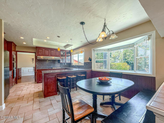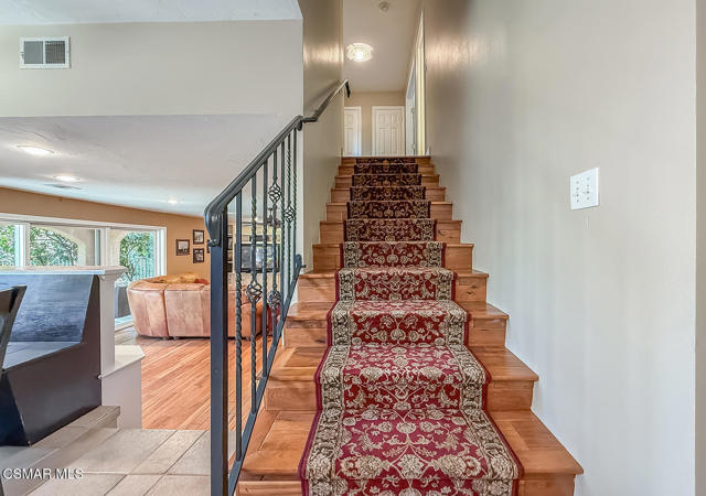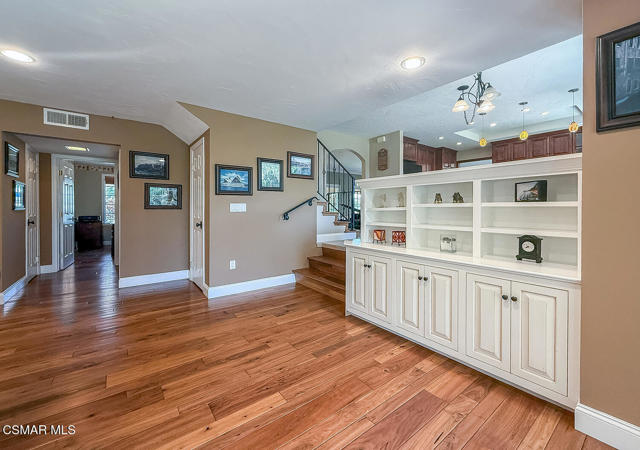 Upgraded & Spacious Santa Barbara Model with a PRIVATE Backyard Oasis in the Heart of Thousand Oaks! Welcome to 167 Siesta Avenue--a rarely available, light-filled Santa Barbara model resting on a quiet, tree-lined street within one of Thousand Oaks' most desirable neighborhoods. Featuring 4 bedrooms (easily modified to 5 bedrooms), plus loft, and 3 bathrooms, nearly 2,870 square feet of living space, and a sprawling 9,147 square foot lot, this beautifully enhanced residence blends comfort, functionality, and a layout designed for indoor-outdoor living. From the moment you arrive, the curb appeal impresses with lush, mature landscaping, vibrant garden beds, and a graceful walkway leading to the covered front porch--the perfect spot to enjoy a morning coffee beneath the shade of established greenery. Step inside to find a bright, flowing interior adorned with rich WALNUT wood flooring, crown molding, and tall dual-paned mullioned windows that flood the space with natural light. The Living Room creates a warm, elegant atmosphere with its inviting tile-surfaced gas/wood-burning fireplace, while the formal Dining Room exudes charm with wainscoting details and generous windows framing serene backyard views. For those needing flexible space, a downstairs bedroom near the entry offers the ideal work-from-home office, guest suite, or playroom, complete with windowed French doors, built-in closet, and front-facing windows. The adjacent full bathroom includes ceramic tile flooring, a built-in vanity, and standing shower. The heart of the home centers around the Family Room and bright eating nook, both overlooking the private backyard. The Family Room is media-ready with a handsome slate-surfaced fireplace, custom built-ins, and sliders that lead seamlessly outside. The adjoining Kitchen has been beautifully updated with granite countertops, stainless-steel double sink, custom cabinetry, and high-end appliances--including a GAGGENAU gas cooktop + wok burner and GAGGENAU double oven. Upstairs, the private Primary Suite offers TWO closets (including a deep walk-in), a cozy sitting nook, and abundant natural light. The remodeled en-suite bath dazzles with a granite-topped dual sink vanity, a makeup station, and a deep, fully upgraded shower wrapped in glass mosaic accents. Two spacious secondary bedrooms provide ample comfort--one boasting an OVERSIZED layout with the option to convert into two separate bedrooms thanks to dual electrical setups. A versatile loft landing makes for the perfect kids play area, gym, or second office space. Additional highlights include a fully updated hall bath with granite-topped dual sink vanity and a tiled tub/shower, an individual indoor laundry room with storage cabinetry and direct garage access, and a functional 2-car garage with built-in workbench and storage solutions. The backyard is a true PRIVATE retreat, framed by tall greenery and offering sprawling lawns, a substantial covered patio, and plenty of space for a pool or expanded outdoor entertaining area. The wide side yard, complete with 8x10 storage shed, offers incredible flexibility for a workshop, dog run, boat parking, or putting green. This peaceful enclave is prized for its proximity to Thousand Oaks' best amenities, including the renowned Wildwood Regional Park with miles of hiking and biking trails, public tennis courts, playgrounds, and sports fields. Top-rated schools--Aspen Elementary, Redwood Middle, and Thousand Oaks High--are all nearby, along with convenient shopping, dining, and quick access to the 101 and 23 freeways. Thousand Oaks is celebrated for its mild Mediterranean climate, year-round outdoor lifestyle, and abundant open space--experience the best of it all at Siesta Avenue!