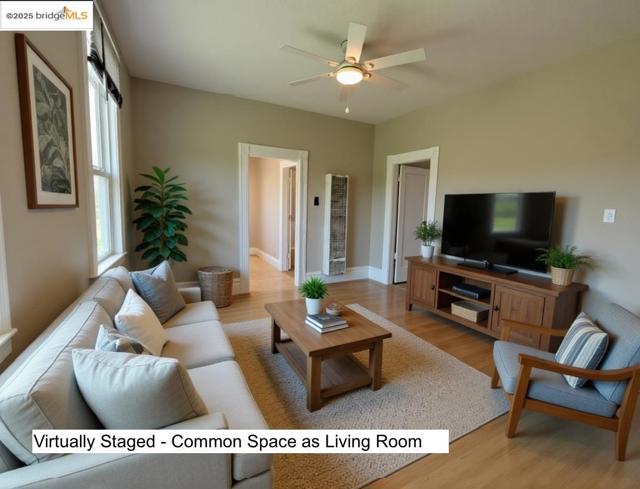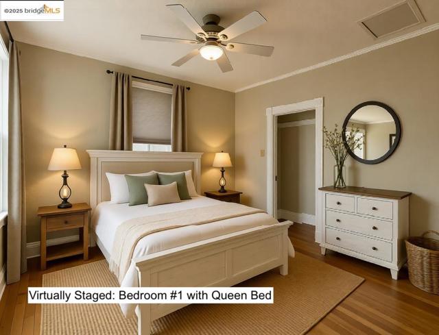 This unit is incredibly versatile. Virtual staging photos show numerous examples. (3-bedroom or 2-bedroom) As 3-bedroom, large front room can be used as a primary bedroom. It could also be an extra-large youth bedroom and/or playroom. The living room could be in the comfortable common room off the kitchen. {<>} As a 2-bedroom, the large front room can be a grand living room, and the common room off the kitchen a lovely dining room. {<>} Beautifully updated kitchen, bathroom, and laundry room. Room for a small table in the corner, as well as space for stools at counter. The covered back porch offers plenty of space for additional storage. {<>} Upper floor unit with 9-foot ceilings. The gorgeous hardwood floors. This unit is exceptionally charming. On top of all of that, LOCATION! In the heart of the St. Vincent's Historical District. A quick 10-minute walk to both the Ferry Terminal and the Farmer's Market / Downtown; each roughly 1/2 mile away. One street away from the beautiful St. Vincent's Church. And only 2 blocks from City Park! {<>} Unit #414 is perfect for business professionals, families, or anyone who wants to be in one of Vallejo's most walkable neighborhoods. This 3-Unit building has an extra-large shared yard and off-street parking. You won't want to miss it.