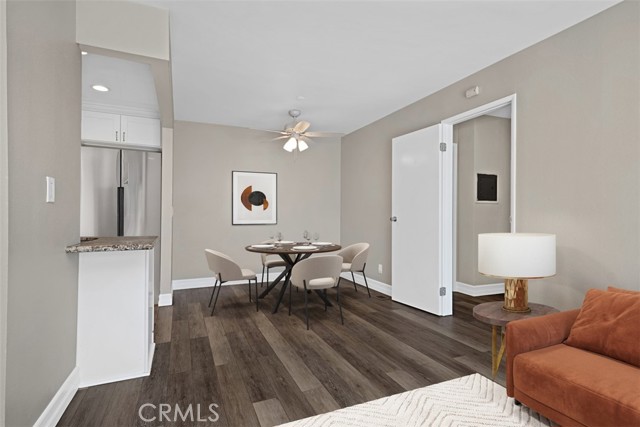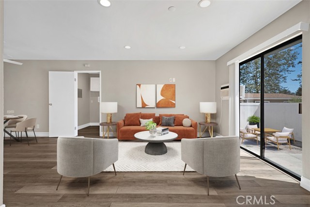 Price Improvement! Great Opportunity in Aliso Meadows, Laguna Hills! This easy-living SINGLE LEVEL home boasts fresh paint throughout in soft, warm tones, new closet doors, new ceiling fans, and new window blinds. Perfect for first-time homebuyers, downsizers, and Investment buyers. Open floor plan includes a large primary bedroom suite with private bathroom, a sunny secondary bedroom, dining room--and laundry room. Both the living room and primary bedroom enjoys sliding glass doors opening to the patio. The recently extended patio provides plenty of space for outdoor dining. HOA pays for trash, water, and grounds maintenance. Freeway close, Toll Road Close!