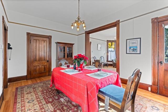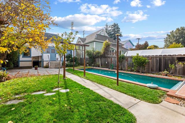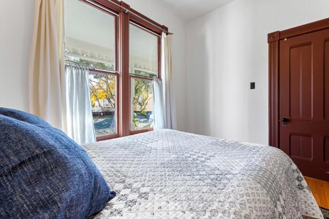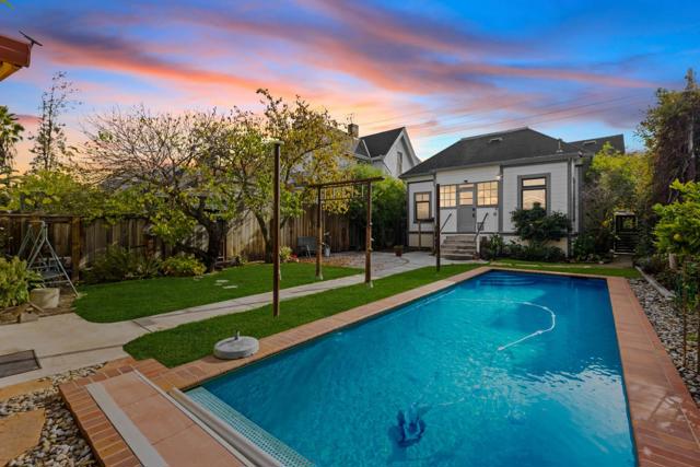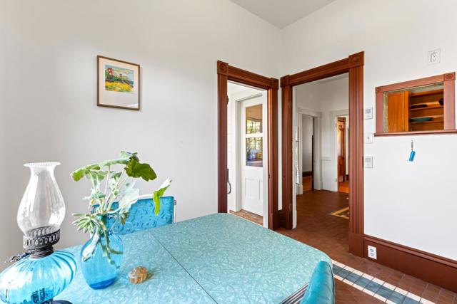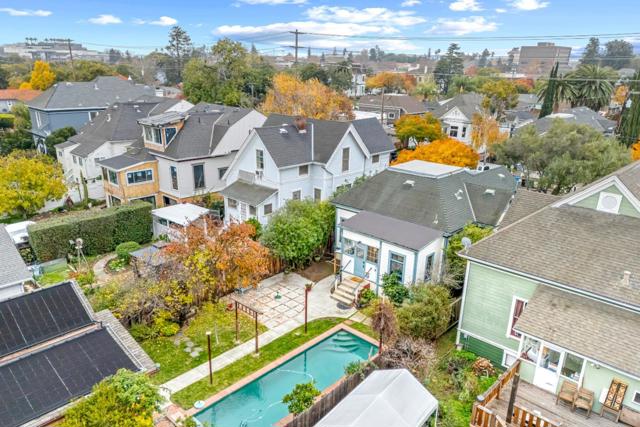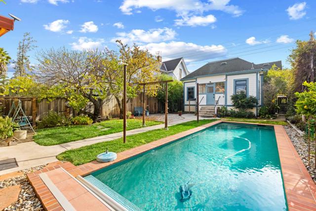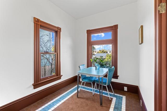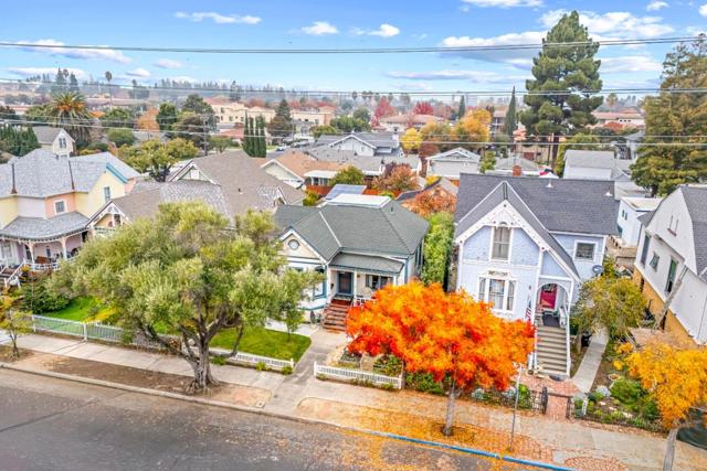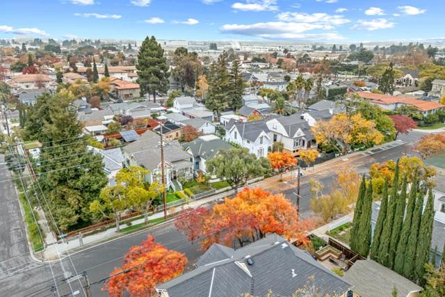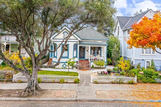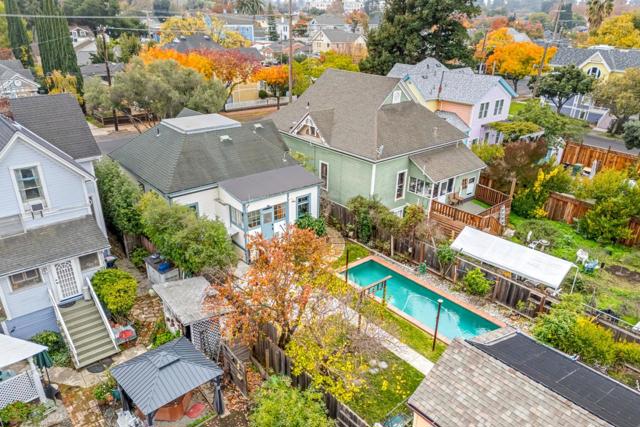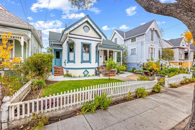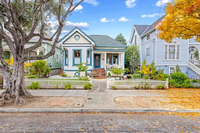 Charmingly preserved Victorian Gem with high ceilings and modern comforts. Historic Mills Act provides significant property tax reduction. Step back in time with the charm of many original features in this, 2 bedrm and 1.5 bath home filled with character. Enjoy the warmth of radiant heated kitchen and bathrm tiled floors and the natural warmth of red oak floors. Original Victorian painted grain casings on large windows, baseboards + many interior doors. Enjoy the large formal dining room perfect for entertaining. Custom kitchen with red birch cabinets, antimicrobial copper countertops and rolling butcher block island. A rare bonus, this home features a large basement perfect for storage or potential conversion. Beautiful newer one-and-a-half story, 2 car garage/carriage house w/upstairs storage or creative space. Landscape includes many fruit trees. New custom wood windows, radiant floor heat mat and blueprints included in sale for future back porch/laundry room remodel. A special opportunity to own a piece of history. Highly sought out neighborhood in Santa Clara's Old Quad. Another bonus is Santa Clara's low electric utility costs. Walking distance to farmers market, post office, many eateries. Close to public transportation and SJ airport.