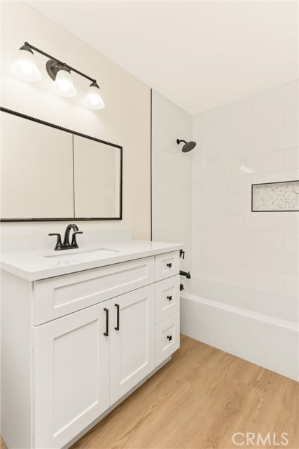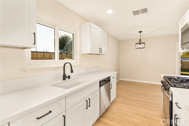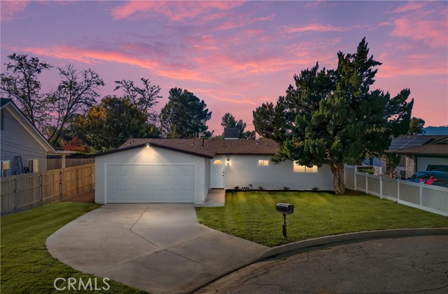 Tucked away at the end of a cul-de-sac and completely updated from top to bottom, this stunning 3-bedroom, 2-bath home blends modern upgrades with timeless style and sits on a generous lot with a large rear yard that’s a true blank canvas—perfect for creating your ideal outdoor retreat. Step into a welcoming and inviting family room that flows seamlessly into the dining area and kitchen, creating a comfortable and functional living space for everyday living and entertaining. The kitchen has been fully reimagined with brand-new white soft-close cabinetry, sleek white quartz countertops, and all-new stainless steel appliances, including a gas range, dishwasher, and microwave. A farmhouse sink, generous pantry, and a convenient breakfast nook overlooking the backyard complete this stylish and practical space. Throughout the home, you’ll find new interior and exterior paint, waterproof vinyl plank flooring, new baseboards, new interior doors, and new oil-rubbed bronze hardware. Major system upgrades provide peace of mind and include a new roof, new garage door, and a brand-new A/C system with all-new ductwork for year-round comfort. The home offers two comfortable secondary bedrooms, both with mirrored closet doors that share a fully updated hall bath with a quartz-topped vanity, new toilet, and a crisp white tiled tub/shower combo. The primary suite serves as a private retreat featuring a beautifully upgraded en-suite bath with a new vanity and a brand-new tiled walk-in shower. Step outside to a spacious backyard with a new pergola patio and endless potential—a true blank slate ready for a pool, play area, garden, or custom outdoor living space. The attached two-car garage includes laundry hookups and direct home access for convenience. Conveniently located near schools, shopping, parks, and freeway access, this move-in ready home offers modern comfort, flexible outdoor space, and everyday convenience—all in one beautiful package!