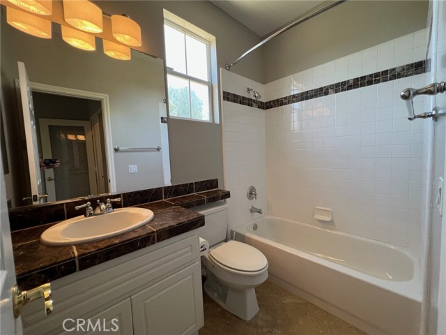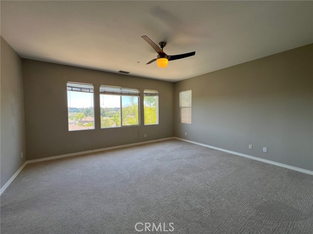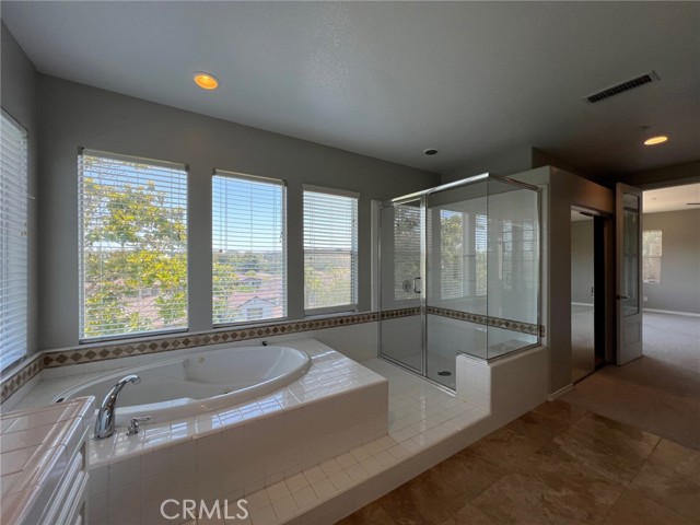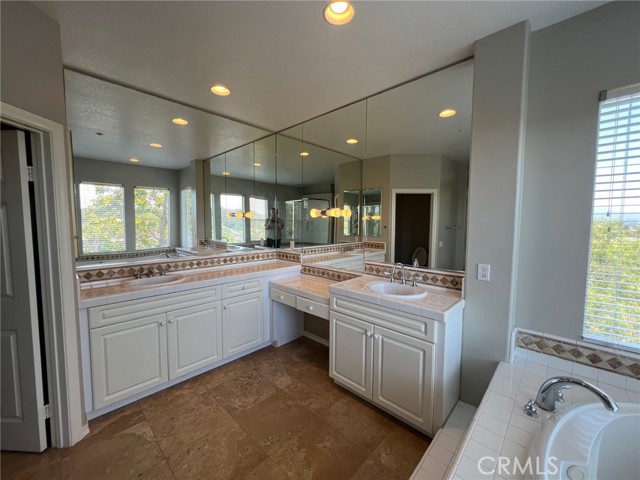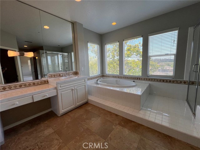 This delightful 5-bedroom, 4.5-bath end-unit home offers the ultimate in privacy, space, and breathtaking views. Tucked in a prime location, this residence showcases stunning vistas and a thoughtfully designed interior. Step inside to a welcoming travertine foyer that leads into a spacious living room featuring soaring vaulted ceilings, wood laminate flooring, elegant plantation shutters, and a striking formal spiral staircase. The generous great room boasts a two-way stone fireplace and a custom built-in entertainment center, perfect for both relaxing and entertaining. The charming kitchen is both stylish and functional, complete with new shaker style cabinets, Quartz countertops, a center island, walk-in pantry, and a sunny breakfast nook that frames the breathtaking views. Upstairs, the primary suite is a true retreat with panoramic views, a cozy sitting area, and a spa-inspired en-suite bath featuring a jetted soaking tub, separate walk-in shower, and dual closets. Outdoors, the secluded backyard is your private haven, featuring a built-in fire pit and lush hillside surroundings—ideal for unwinding or entertaining against a picturesque backdrop. Additional highlights include a main-level bedroom and full bath, an upstairs loft, indoor laundry area, two-car garage, and a long driveway offering ample parking. This is a rare opportunity to enjoy luxury living, privacy, and scenic beauty—all in one of the most desirable locations available.