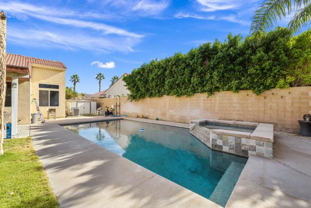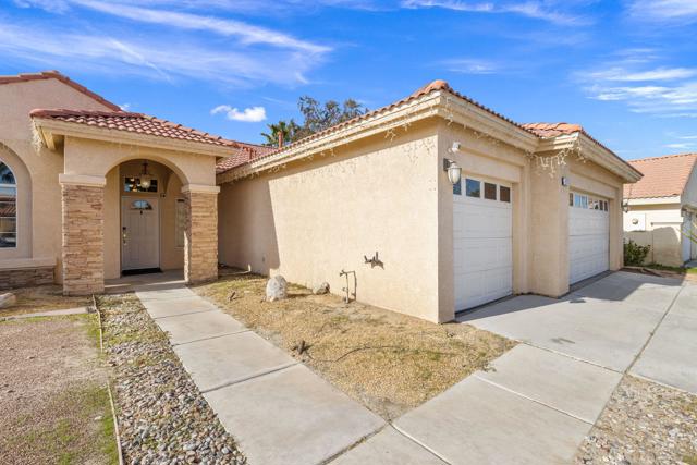 Welcome to this well-maintained 3 bedroom, 3 bathroom home located in a desirable Cathedral City neighborhood with convenient access to the I-10 freeway, shopping, dining, and everyday amenities. Offering comfort, space, and privacy, this home is ideal for those seeking both functionality and resort-style outdoor living.The home features tile flooring throughout and a thoughtfully designed layout, including a generous primary suite with a large walk-in closet. The attached 3-car garage provides ample parking and storage.Step outside to a large, private backyard designed for entertaining and relaxation. Enjoy the saltwater Pebble Tec pool and spa, perfect for cooling off on warm desert days or unwinding in the evenings. The front yard offers attractive desert landscaping for easy maintenance and great curb appeal.Major system upgrades include a newer HVAC system and water heater, both replaced in 2019, offering peace of mind and energy efficiency.Located in a quiet, established neighborhood while remaining close to major commuting routes, retail centers, and restaurants, this home combines convenience with comfort. Don't miss the opportunity to lease a pool home with space, upgrades, and an excellent location.