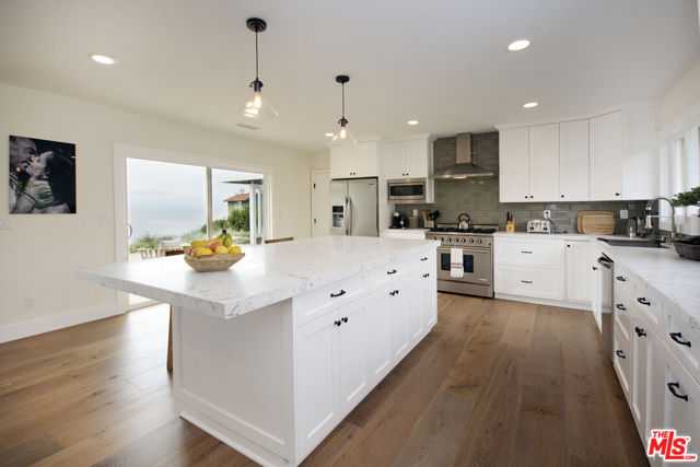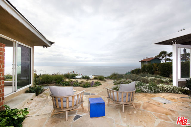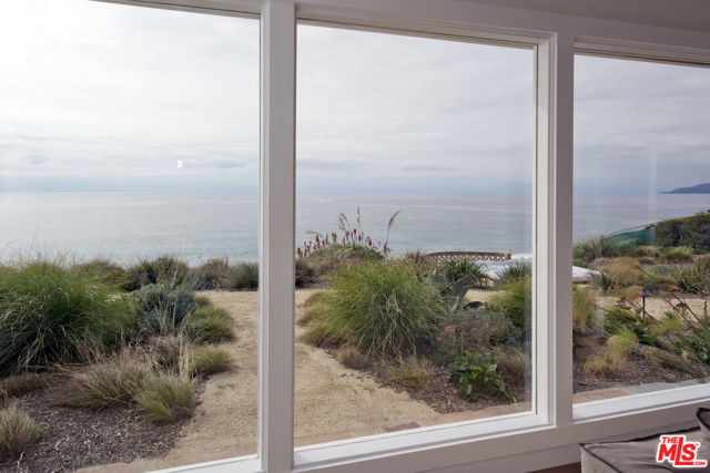 Nestled atop the highly sought-after Point Dume bluff, this renovated home boasts breathtaking panoramic views and **direct stairway access** to Westward Beach. Set on over an acre of private, gated land, this two-bedroom, two-bathroom residence features hardwood floors and stunning ocean views from nearly every room. The sun-drenched, open-concept living area includes a cozy rock fireplace, a spacious dining area, and a gourmet kitchen complete with island and new appliances. Expansive glass sliders open to a flagstone patio, lounging area, and an ocean-view hot tub, perfect for outdoor relaxation. The large owner's suite offers a luxurious en-suite bathroom with walk-in shower and a custom walk-in closet. Additionally, the property includes a two-car garage with ample guest parking. Conveniently located near schools, restaurants, markets, and scenic hiking trails, this home is a coastal dream.