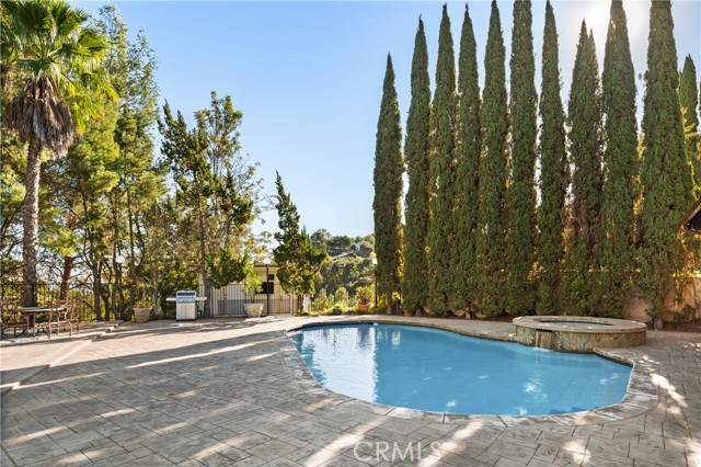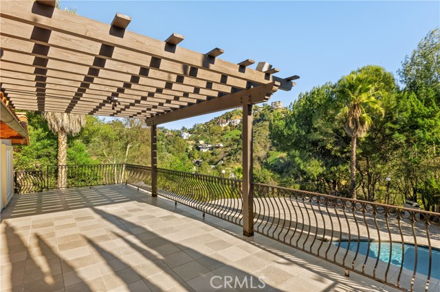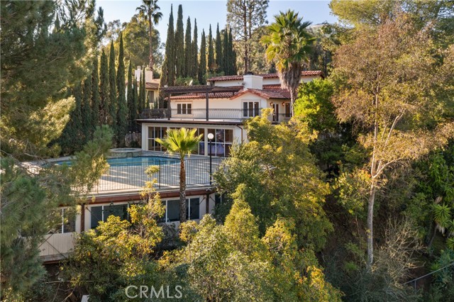 Tucked away at the end of a quiet cul-de-sac in Laurel Canyon, this gated Hollywood Hills retreat is situated on a sprawling hillside lot that offers dramatic canyon views. Enter through grand double doors into a warm, light-filled interior, where a spacious living room flows seamlessly into a bright sunroom framed by floor-to-ceiling walls of glass. The chef’s kitchen is a dream for anyone who loves to cook or entertain, beautifully appointed with top-of-the-line appliances and an oversized island. Adjacent, the formal dining room provides the perfect setting for casual meals or lavish dinner parties. Head upstairs to find three generously sized bedrooms, along with a wood-paneled office. The primary suite is a true sanctuary, featuring its own private patio, an inviting sitting area, custom walk-in closet and sumptuous bathroom, complete with a jetted tub, oversized shower, bidet, double vanity and separate makeup vanity. Step outside to the serene backyard oasis, where you can lounge by the sparkling pool/spa, relax in the sauna or entertain on the expansive patio while taking in the captivating vistas. There’s also an outdoor bathroom and bonus room, currently serving as a gym which is about 500-600 square feet, that adds even more functional living space. Additional highlights include a main level ensuite bedroom and powder bathroom, a security system and two-car garage with a laundry area. Perfect for those seeking privacy without sacrificing convenience, this exceptional estate is just minutes from everything the Westside and Valley have to offer, and sits within an award-winning school district.