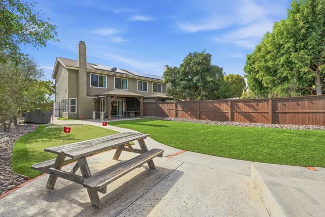 Located in The Cape at Calavera Hills, this beautifully updated 4-bedroom, 2.5-bathroom home offers approximately 1,724 sq ft of well-designed living space and sits on one of the LARGEST LOTS in the community. Positioned on a quiet cul-de-sac and just steps from nearby parks and walking trails, the property features an exceptional outdoor setting with professional landscaping by Leslie Landscaping, premium artificial turf, a custom putting green, gazebo, and expansive usable yard—ideal for entertaining, play, or relaxing in privacy. The interior has been thoughtfully refreshed with numerous upgrades, including air conditioning, all new windows, leased solar, updated flooring downstairs, fresh interior paint, new dishwasher, washer and dryer, water heater, primary shower door, renovated garage with Tesla charger, new refrigerator, and new blinds. The HOA has recently completed a new roof, with exterior replacement scheduled for Spring 2026, further enhancing long-term value. This move-in-ready home presents a rare opportunity to own a turnkey property with standout outdoor space in one of Carlsbad’s most desirable neighborhoods.