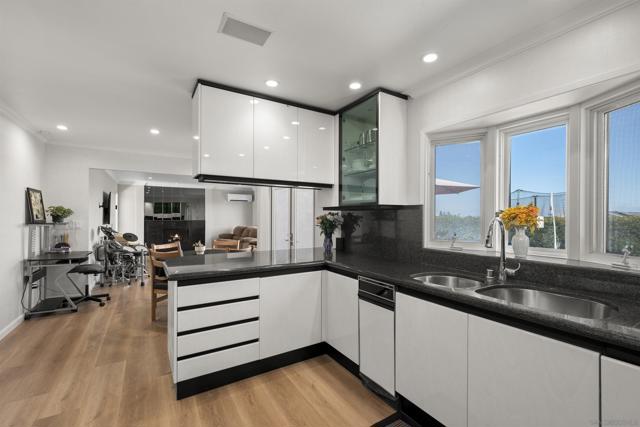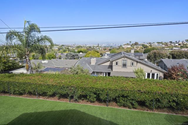 Introducing 1151 Catalina Blvd, a beautifully updated Mid-Century Modern home located in the heart of Point Loma. This exceptional residence offers sweeping views of the San Diego Bay, the downtown skyline, and the majestic mountains beyond. Situated on a spacious 1/4-acre lot, the 5-bedroom, 4-bathroom home provides a serene and quiet living environment. It is thoughtfully buffered from the hustle of Catalina Blvd by a generous 100-foot setback, ensuring maximum peace and privacy for its residents. The home’s striking entrance features a beautiful private atrium, creating a tranquil outdoor feel that flows naturally into the primary dining room, which is bathed in natural light. Vaulted ceilings and newly installed plank flooring enhance the Mid-Century Modern aesthetic, with clean lines, open spaces, and a seamless connection between the indoors and outdoors. The upper-level primary suite is a true retreat, offering stunning views, a private balcony, and a spa-like ensuite with dual vanities and a walk-in closet, along with additional storage in three extra closets. Designed for both function and elegance, the kitchen is equipped with granite countertops, dual ovens, European-style cabinetry, and top-tier appliances. The family and formal living rooms showcase custom marble fireplaces, adding warmth and sophistication with the signature style of the era. Enjoy seamless indoor-outdoor living with two main areas that lead to an expansive backyard, perfect for entertaining or relaxing with panoramic views of the Bay, Harbor, and surrounding mountains.