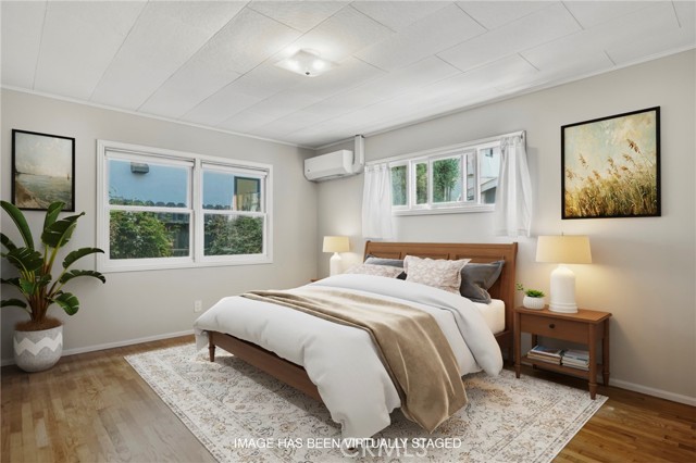 Welcome to this charming 1942 cottage with a custom-built "catio" and native plantings set in the heart of Eastside Costa Mesa. Offering approximately 900 sq ft, this two-bedroom, one-bath home blends vintage appeal with modern updates to create an inviting, livable retreat. Inside, original details set the tone — warm wood floors and elegant interior French doors open to the front bedroom, creating a flexible space ideal for guests, a home office, or creative use. The cozy, private rear bedroom offers generous closet space and is conveniently located near the full bathroom. In the kitchen, classic tilework and cabinetry bring personality and color, reinforcing the home’s connection to its era while still remaining functional for everyday use. Out front, a beautifully curated landscape of California native plants creates a welcoming, low-maintenance setting that feels environmentally mindful. A long driveway leads to a detached garage, providing roomy parking for one and additional storage space. Additional highlights include a separate inside laundry room, ductless heating and air conditioning for year-round comfort, side door for ease of entry from the driveway, and a "catio" that provides a safe and enriching outdoor space for feline companions. This unit is the front unit (of two), and does not include use of the backyard space. Water and twice-monthly gardening services included. Minutes from the Back Bay's trails and recreational activities, neighborhood boutiques, 17th Street, Triangle Square, and more.