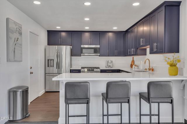 Got Ocean Views? Breathtaking panoramic ocean views await from this beautifully remodeled end-unit penthouse in the gated Surfside IV Community, just steps from Port Hueneme Beach and Pier. This one-of-a-kind home perfectly blends coastal charm with modern luxury. Upgrades include luxury vinyl plank flooring, sleek quartz countertops, custom kitchen cabinetry with soft-close hinges, matching Frigidaire stainless steel appliances, recessed lighting, and remodeled bathrooms with premium finishes. Neutral color and plush carpeting in bedrooms and newer paint throughout. The kitchen wall was removed and ceilings were elevated to maximize ocean views. Relax and enjoy the views from the kitchen, living room, primary bedroom, or private balcony--perfect for morning coffee or sunset cocktails. In-unit laundry features side-by-side washer and dryer machines, and all appliances are included! 660 Terrace View Place also offers a one-car private garage and unassigned guest parking. The Surfside IV Community Clubhouse features a fitness center, full kitchen for events, library, game room with ping-pong, billiards, piano, sauna, and a recently remodeled year-round heated pool and spa. Whether as a primary residence or a vacation getaway, this home is more than just a property--it's a luxurious coastal lifestyle waiting to be enjoyed. Professional Photos Coming Soon.