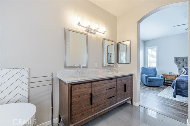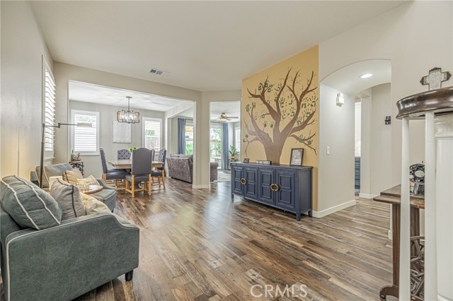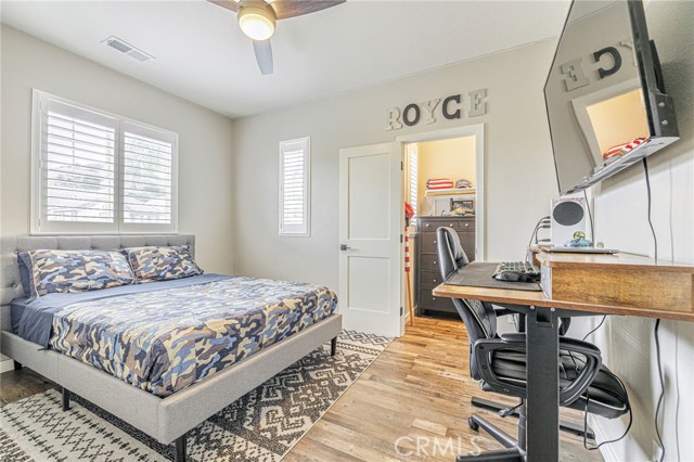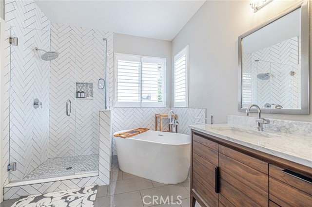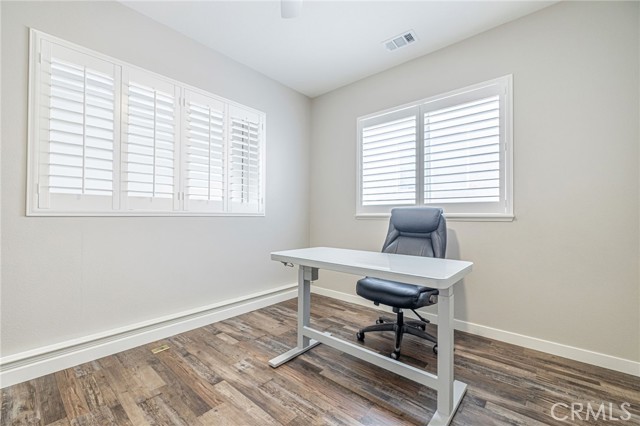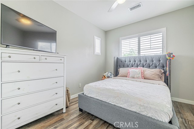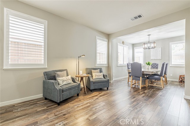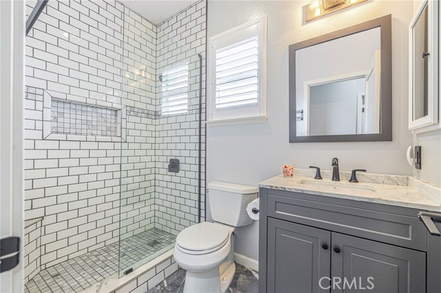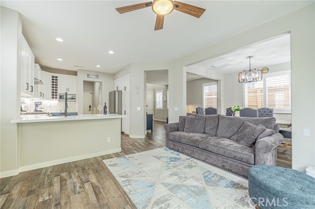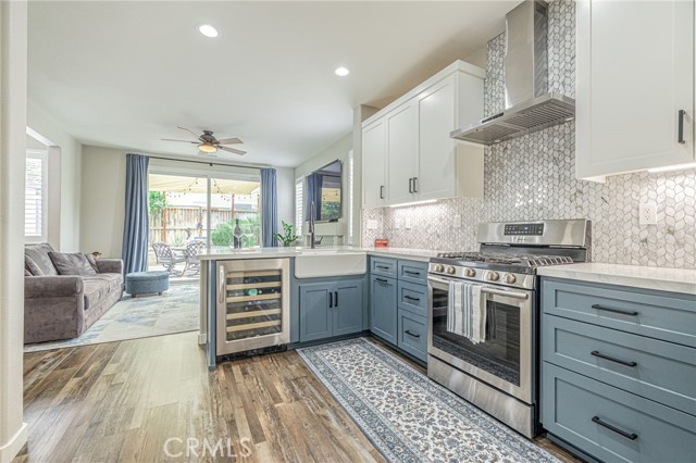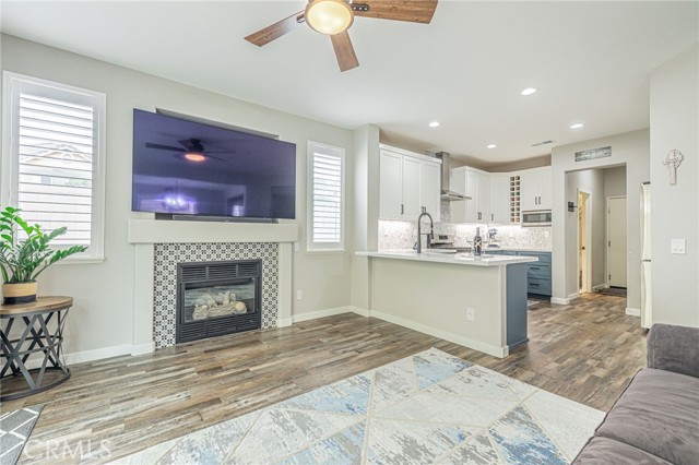 Welcome to this beautifully remodeled residence in the desirable community of Castaic, where thoughtful design meets elevated everyday living. This turnkey home offers 3 bedrooms, 2.5 baths, and a versatile flex space ideal for a home office, den, or guest room. The interior has been extensively upgraded with wide-plank luxury vinyl flooring throughout, complemented by a soft, neutral color palette that creates a warm and inviting ambiance. The fully redesigned kitchen is a standout feature, showcasing quartz countertops, custom shaker cabinetry, a marble backsplash, a Kohler farmhouse sink, built-in wine refrigerator with dedicated wine storage, and a custom range hood—perfectly blending style and functionality. All bathrooms have been tastefully remodeled with high-end finishes, including quartz and marble surfaces, custom vanities, designer tilework, and updated fixtures. The primary suite offers a spa-inspired retreat with a soaking tub and separate shower, creating a relaxing, resort-like experience. The living spaces are equally inviting, highlighted by a beautifully updated fireplace surround that adds warmth and a refined focal point. Additional enhancements include solid wood interior doors with sleek black hardware, custom shutters throughout, updated lighting at the entry and dining areas, and ceiling fans in each bedroom. A new custom sliding door opens to a serene, low-maintenance backyard designed for relaxation and entertaining, featuring ambient lighting, a shaded patio cover, raised planter beds with citrus, and spacious side yards with a garden shed for added functionality. Recently painted and meticulously maintained, this home offers a rare opportunity to own a truly move-in ready property with quality upgrades throughout.