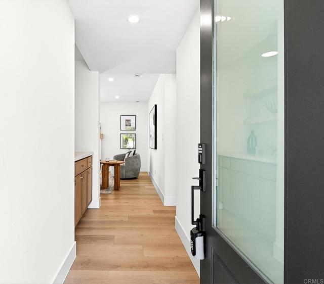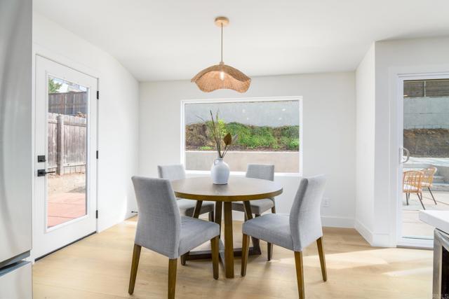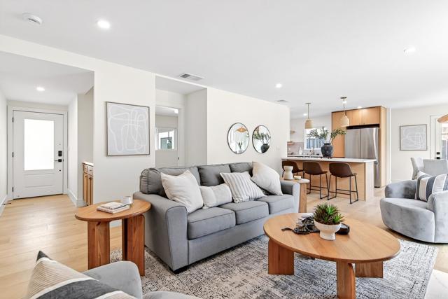 Welcome to 733 Cathy Ln, a beautifully reimagined single-story home in the heart of Cardiff-by-the-Sea. This fully remodeled 3-bedroom, 2-bath home strikes a perfect balance of coastal charm and modern comfort. A natural wood picket fence frames the fully enclosed front yard, while black-framed windows and fresh landscaping set the tone from the curb. Step inside to a cozy foyer with alcove shelving, where warm white oak-toned plank flooring and an open-concept layout set the tone. The living area features a fireplace with a wood mantel and flows naturally into the dining space and kitchen. Your modern galley kitchen features white oak cabinets paired with quartz countertops, floating wood shelves, and gold accents. A 5-burner gas range, counter-depth refrigerator, and wine cooler round out the kitchen. Seamlessly connected to your kitchen, a dedicated laundry room with a service sink and side yard access adds everyday convenience. Your primary suite features a walk-in closet and spa-inspired ensuite with a reeded dual sink vanity, frameless glass shower, and warm sand tile. The second bath offers its own character with matte checkerboard tile, a shiplap accent wall, floating vanity, and bronze accents. The interior flows seamlessly to a landscaped backyard and patio with outdoor fireplace, perfect for relaxed evenings or hosting friends. A new roof, new HVAC, updated electrical panel, and new windows round out this thoughtfully updated home. All of this in one of San Diego's most beloved coastal communities, minutes from the sand, top-rated schools, Encinitas Community Park, Seaside Market, and Cardiff Town Center. Schedule your showing today!