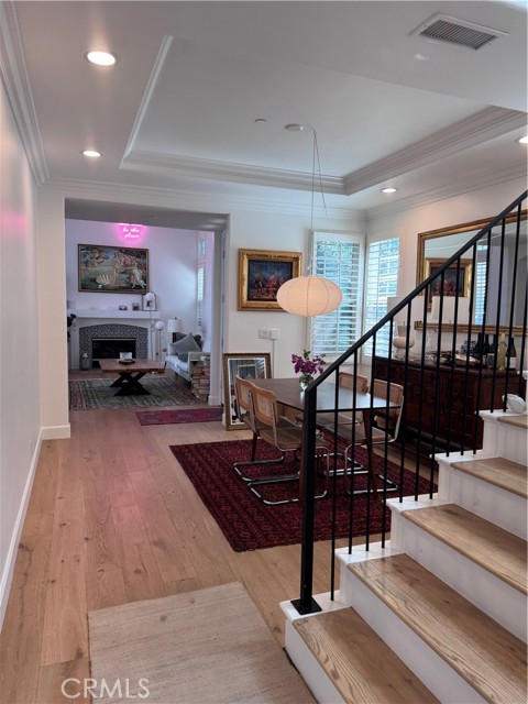 Welcome to 2553 Santa Ana Ave! Located in the desirable Costa Bella enclave of highly sought after Eastside Costa Mesa. The open-concept layout features wood flooring throughout and a warm bohemian-inspired interior filled with abundant natural light. Offered for lease for the first time, this exceptional residence has been meticulously maintained. This thoughtfully designed home features a spacious, open floor plan with 4 bedrooms and 3 bathrooms, including one main-floor bedroom. The gourmet kitchen opens to the main living area and is equipped with stainless steel appliances, quartz countertops, a large island and ample cabinets. The inviting living room centers around a cozy fireplace, creating the perfect space to relax with a book or gather with guests. Upstairs, the primary suite serves as a private retreat with a large walk-in closet, dual vanities, a walk-in shower, and a separate soaking tub. Two additional bedrooms, a full bathroom, and a dedicated laundry room with built-in cabinets complete the upper level. The private backyard features Spanish tile and is surrounded by lush trees and shrubs, creating a quiet, serene setting. Owned solar provides the benefit of a zero-dollar electricity bill. Conveniently located near the Back Bay, top schools, fine dining, and beaches.
