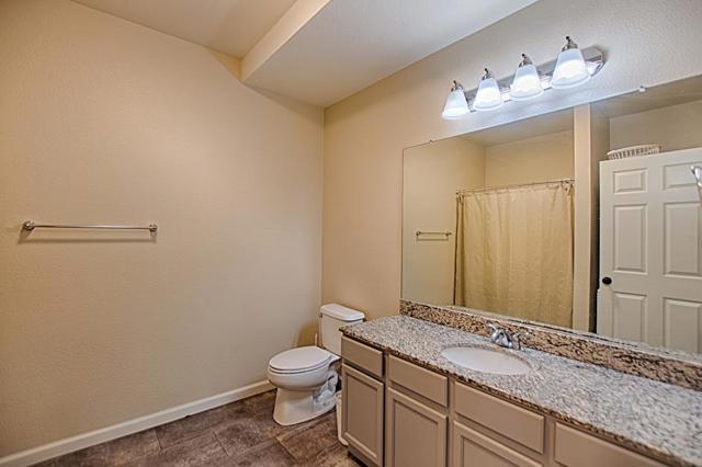 This light, bright, and recently updated ground-level studio is the perfect place to stop renting and start building equity! Tucked away at the back of the building for ultimate privacy, this unit combines modern style with everyday convenience. A refreshed interior features recent paint throughout and updated lighting and hardware. Both the kitchen and the oversized bathroom boast elegant granite countertops, complemented by the convenience of an in-unit stackable laundry and a full tub/shower combo. The open floor plan flows over luxury vinyl flooring, while a smart semi-separated bedroom area with privacy curtain offers a cozy retreat without sacrificing space. Step outside to your private front patio, perfect for a bistro set and morning coffee. This unit includes one dedicated covered parking space with storage. The complex offers common green spaces and a playground, all while being perfectly positioned near Ramsey Park, grocery stores, dining, and major commuting routes. Plus, you are just minutes from scenic Sunset State Beach and Palm Beach in Watsonville. Santa Cruz beaches and Boardwalk are only about 20 minutes away. This move-in-ready gem is the perfect entry point into homeownership.