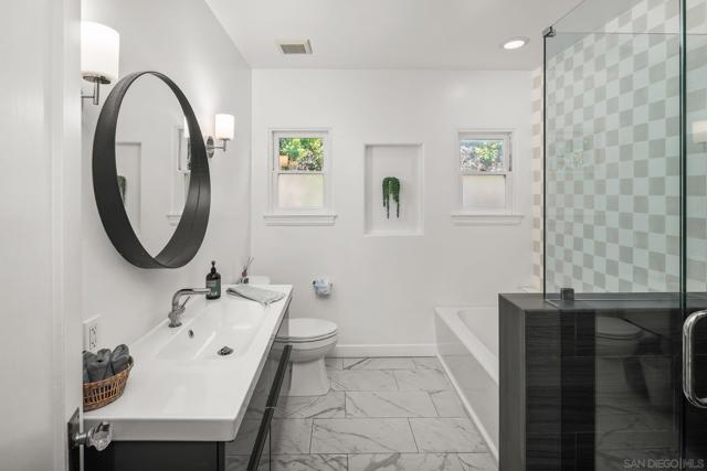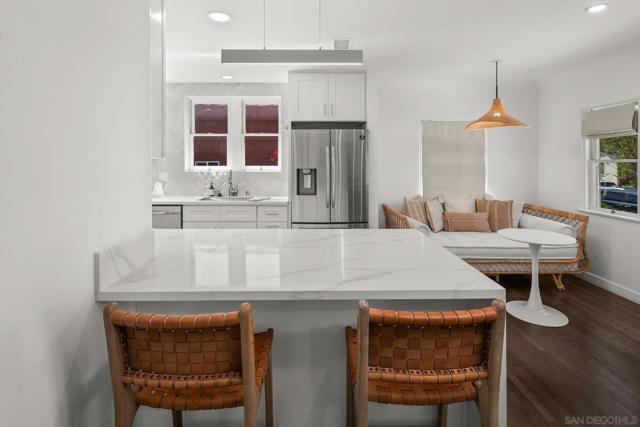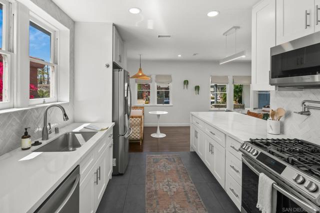 Welcome to this beautifully updated Kensington home, where timeless character meets modern convenience. Thoughtfully renovated throughout, the home features stunning hardwood floors, a bright and open layout, and a designer kitchen complete with sleek cabinetry, quartz countertops, and stainless steel appliances—perfect for both everyday living and entertaining. The living and dining spaces flow effortlessly, creating a warm and inviting atmosphere, while the updated finishes bring a fresh, contemporary feel to every room. The bathrooms have been tastefully redesigned offering a spa-like experience. A standout feature of the property is the versatile bonus space created from the converted garage. Above, a private guest unit provides excellent flexibility for extended family or visitors. Situated in one of Kensington’s most desirable pockets, this home is just moments from the vibrant restaurants, coffee shops, and boutiques along Adams Avenue, offering the perfect blend of neighborhood charm and urban accessibility. This is a rare opportunity to own a turnkey property in a highly sought-after location with added versatility.