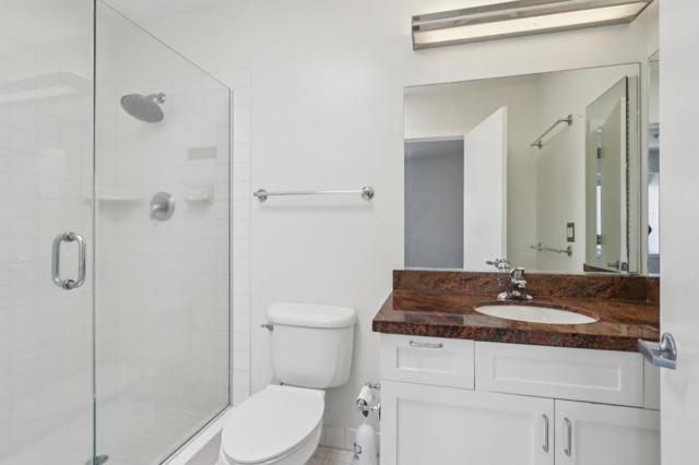 Experience elevated urban living in this top-floor end-unit loft in Downtown San Jose, offering street-level/elevator access and 1,204 sq ft of thoughtfully designed space. With a south-facing orientation, this home is filled with natural light from expansive windows and dramatic 20+ ft ceilings, creating a bright, open feel. Move-in ready with fresh paint, stainless steel appliances, a cozy gas fireplace and interior washer/dryer. The open-concept layout features floor-to-ceiling windows and a loft ideal for an office or media space. A flexible front room serves as a second bedroom or office with a full bath. A large outdoor patio highlights views of the west hills. The primary suite includes a walk-in closet, separate vanity, and glass shower. Residents enjoy desirable community amenities, including secure building access, elevator service, a gated garage with guest parking, assigned parking spot, pool and spa, and a fully equipped fitness center. Conveniently located close to San Pedro Square, Japantown, SJSU, Caltrain, VTA, major highways and SJ Airport.