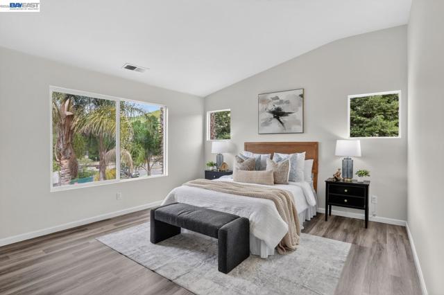 Welcome to this beautifully updated home in desirable Castro Valley! Featuring fresh interior paint and new luxury vinyl flooring, this residence offers a bright, modern feel throughout. The spacious kitchen is equipped with granite tile countertops, stainless steel appliances, a gas range, and recessed lighting—perfect for everyday living and entertaining. Enjoy the convenience of an upstairs laundry room and tall ceilings that enhance the home’s open and airy layout. The expansive primary suite boasts a large bathroom with a soaking tub, frameless glass shower, and a generous walk-in closet. Step outside to a large backyard oasis complete with a pool, spa, and mature landscaping—ideal for relaxing or hosting gatherings. Located near award-winning schools, this home truly has it all!